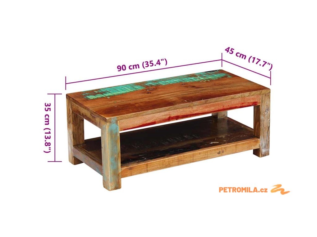 Konferenční stolek masivní recyklované dřevo 90x45x35 cm