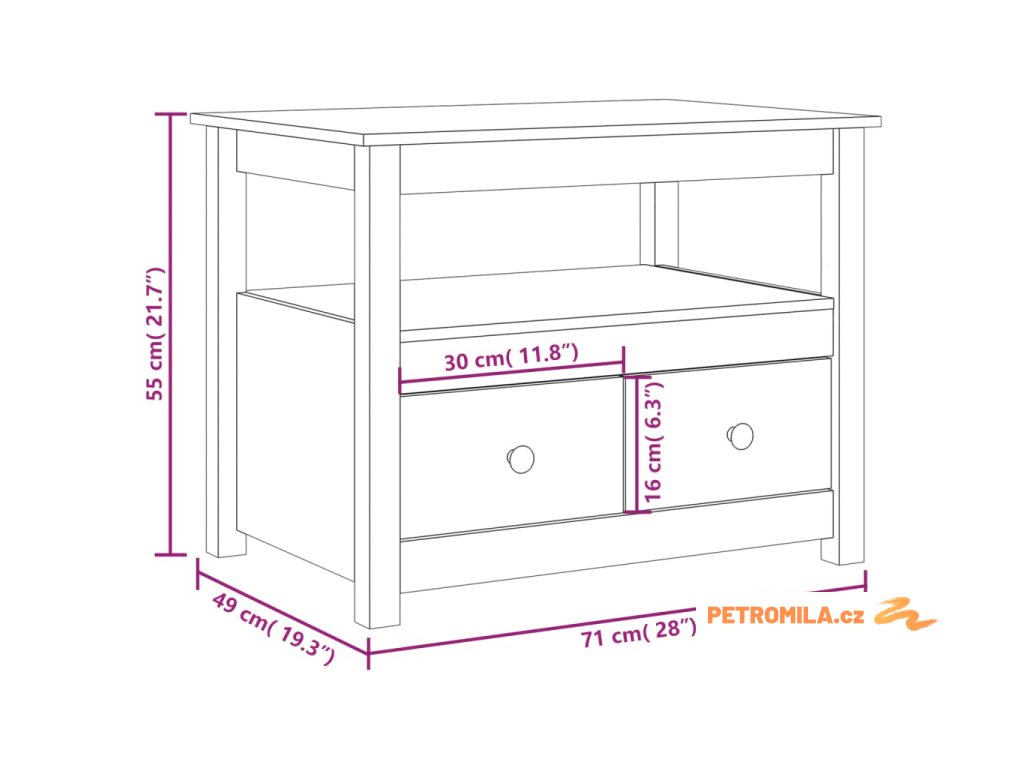 Konferenční stolek medově hnědý 71x49x55 cm masivní borovice