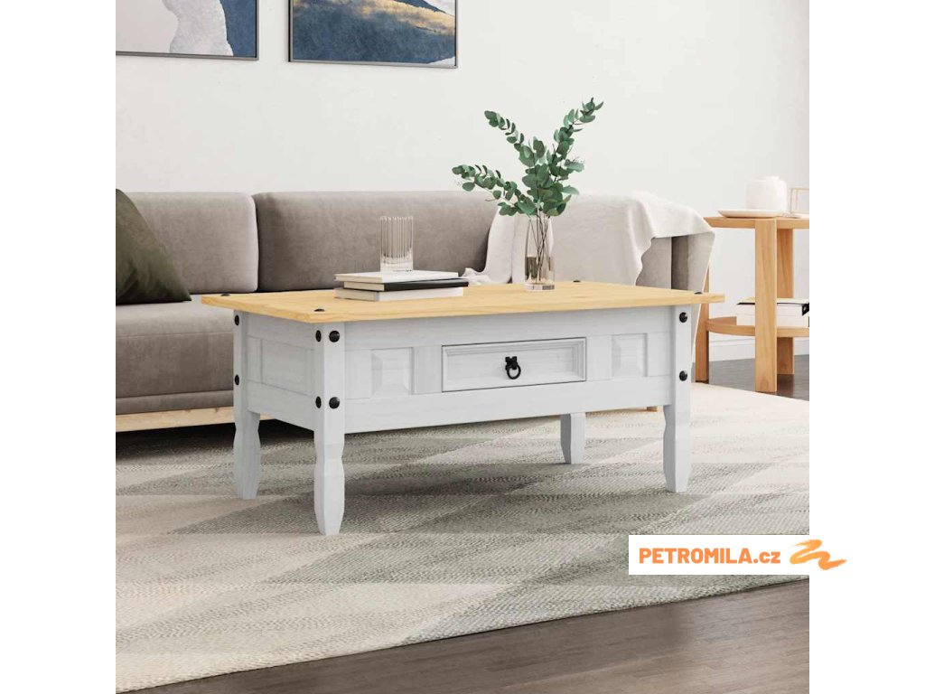 Konferenční stolek mexická borovice Corona bílý 100x55x44 cm