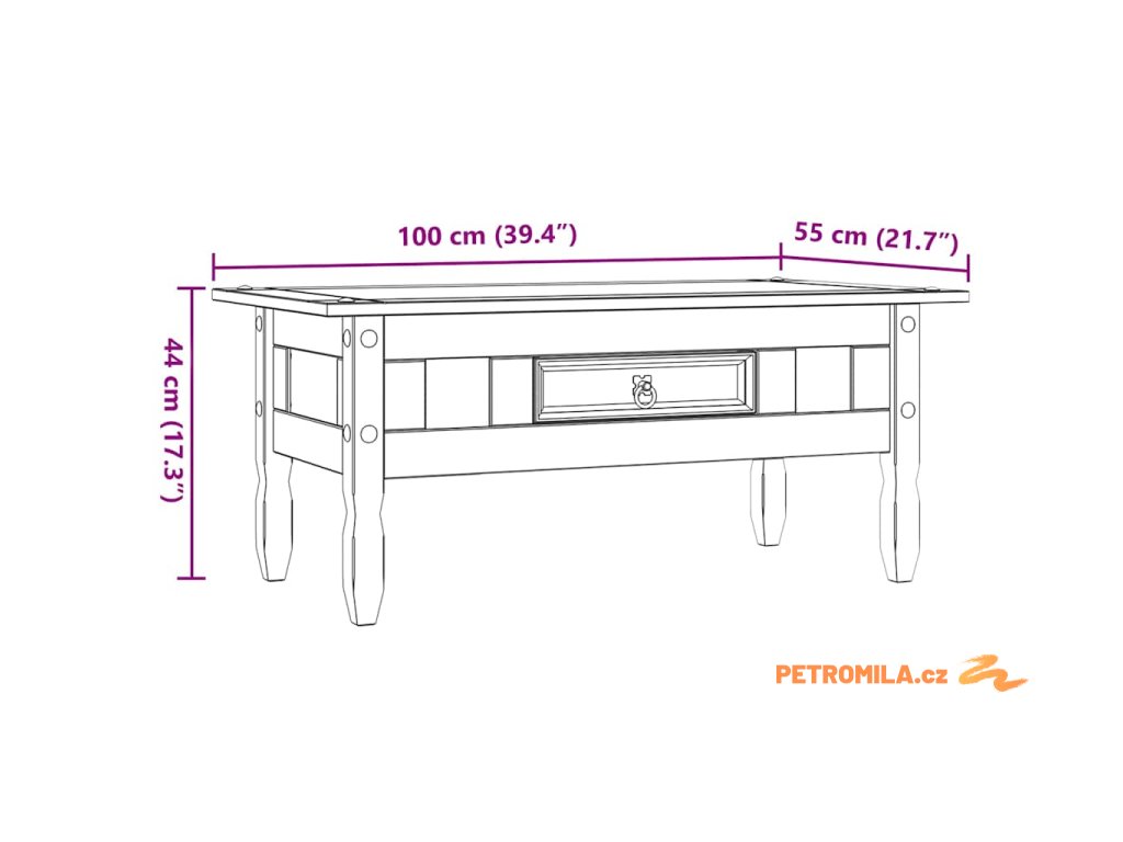 Tento vysoce kvalitní konferenční stolek je okouzlující kus nábytku v mexickém stylu Corona. Navoskované borové dřevo vyzařuje rustikální mexický šarm, takže tento stolek bude skvělým doplňkem do vaší ložnice nebo obýváku.