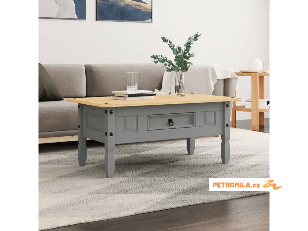 Konferenční stolek mexický borovice Corona šedý 100x55x44 cm