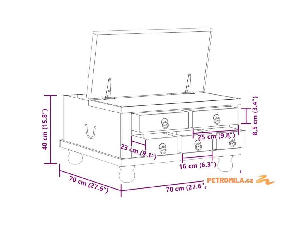 - Rozměry: 70 x 70 x 38 cm (D x Š x V)