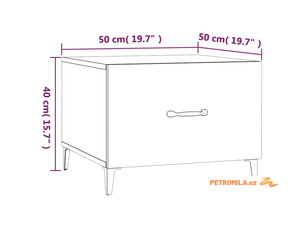 Konferenční stolek s kovovými nohami hnědý dub 50 x 50 x 40 cm