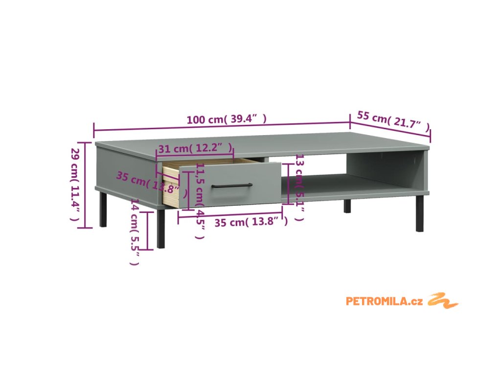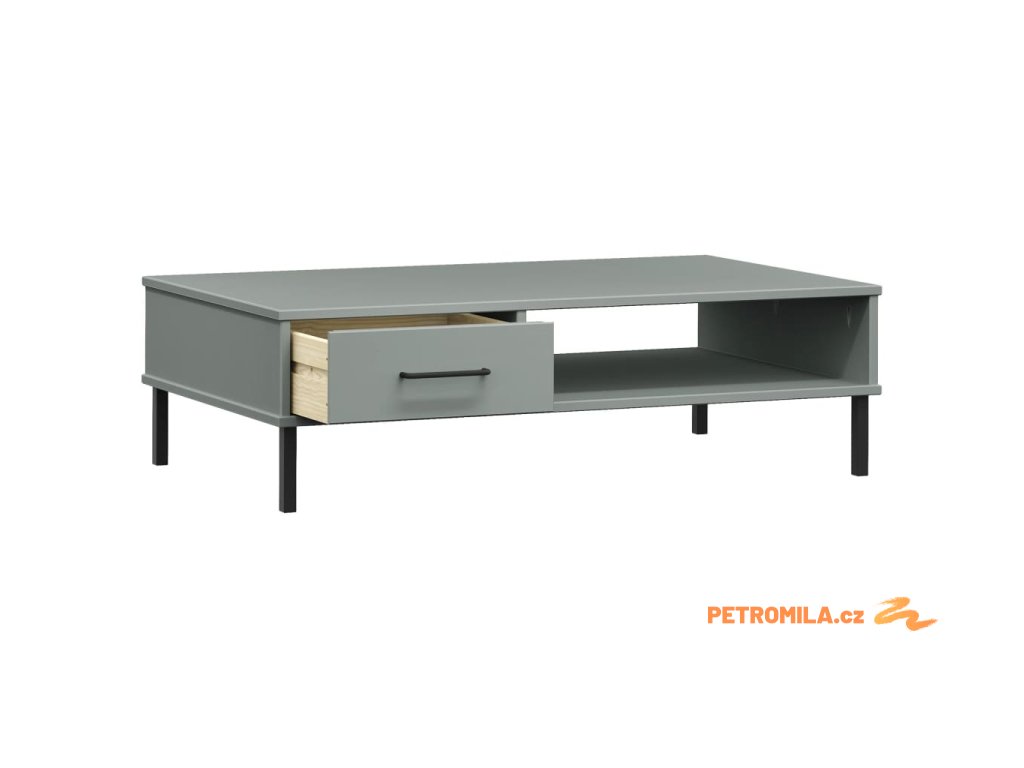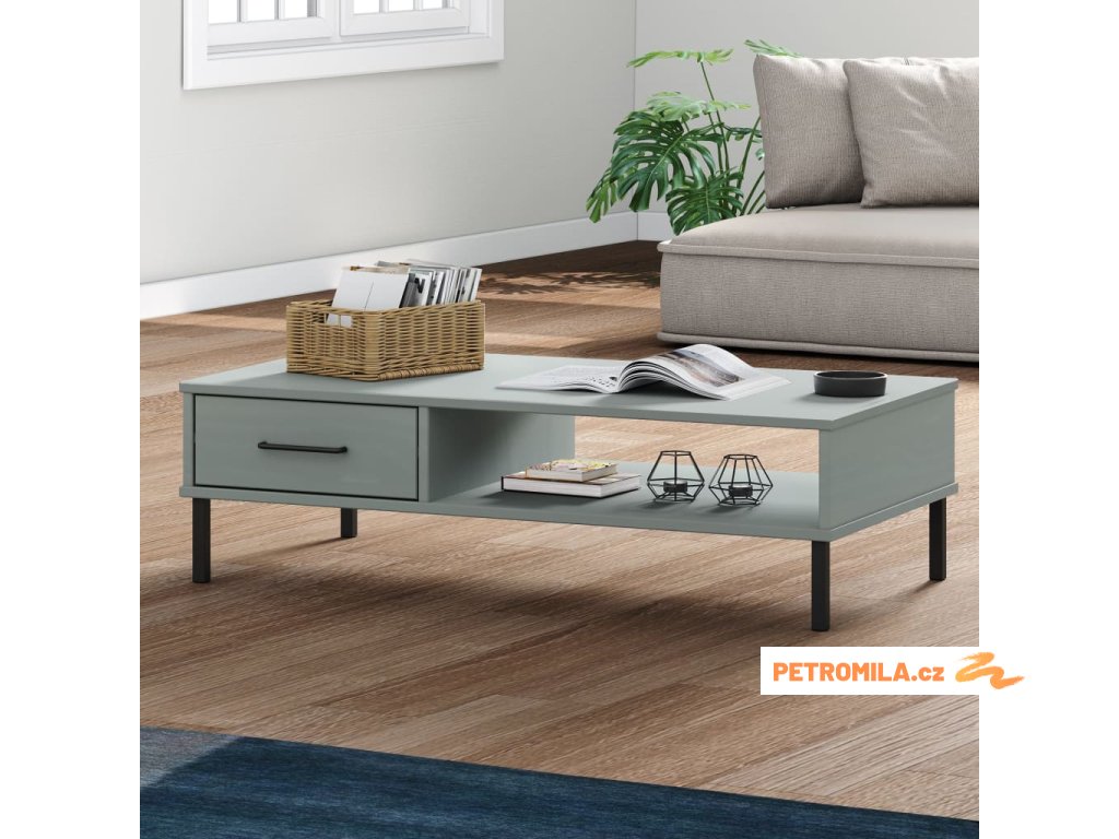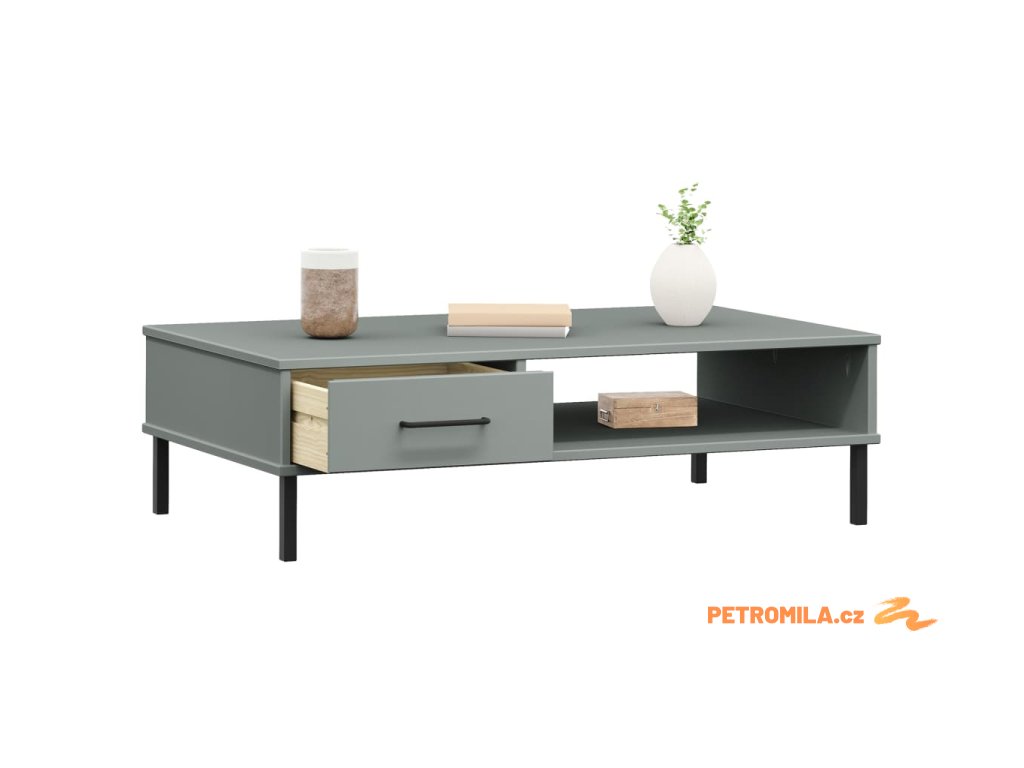 Konferenční stolek s kovovými nohami šedý masivní borovice OSLO