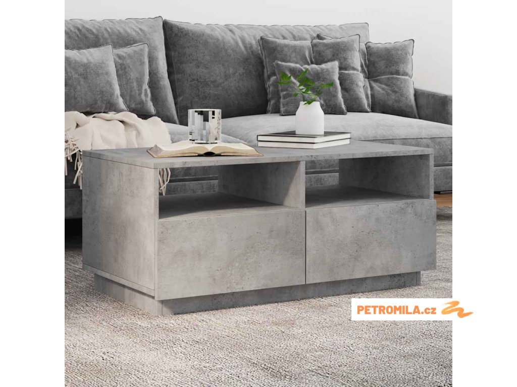 Konferenční stolek s LED osvětlením betonově šedý 90x49x40 cm