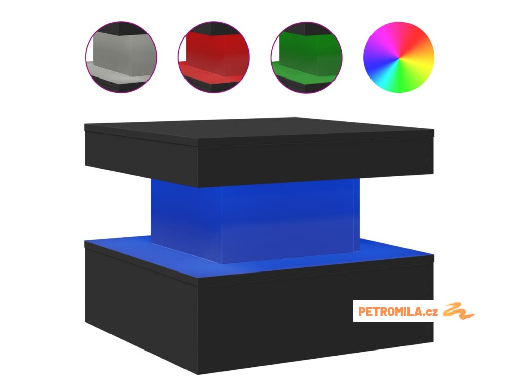 Konferenční stolek s LED osvětlením černý 50 x 50 x 40 cm