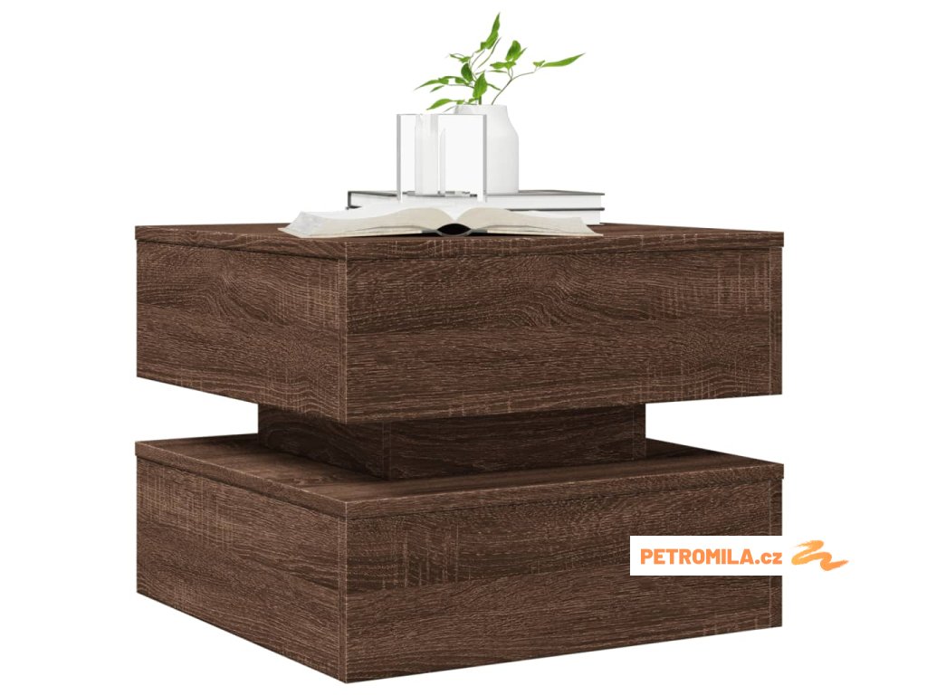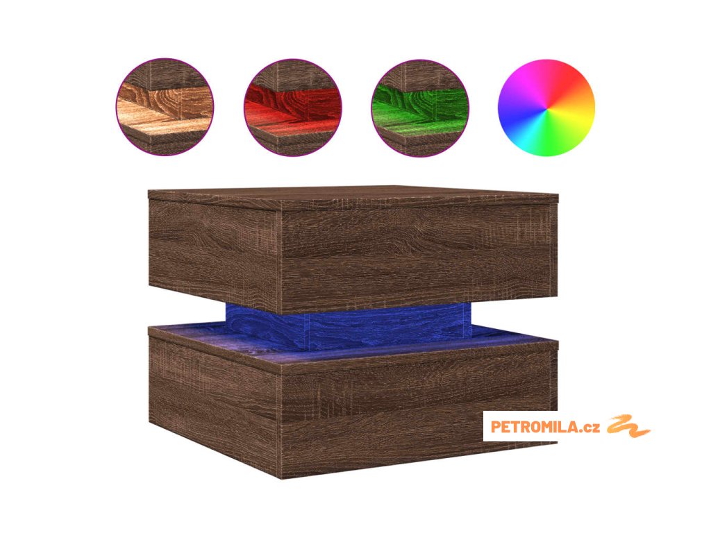 Konferenční stolek s LED osvětlením hnědý dub 50 x 50 x 40 cm
