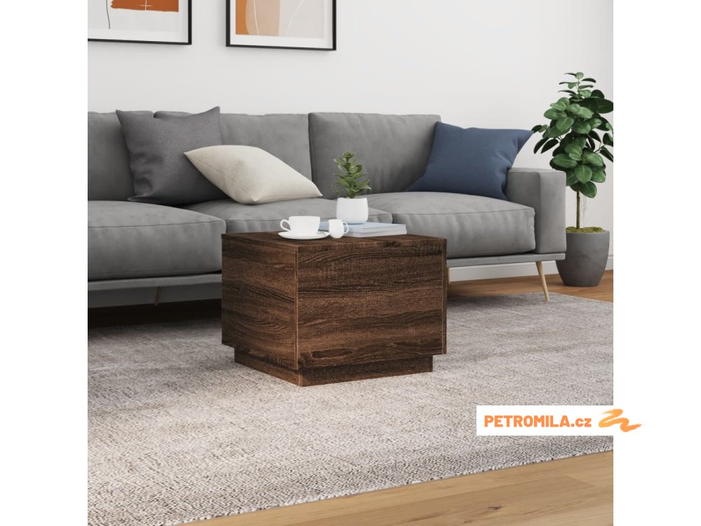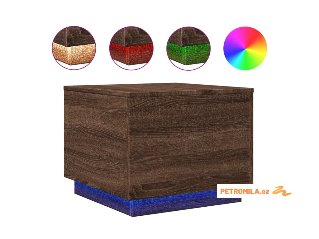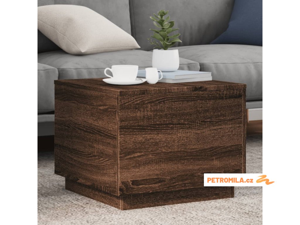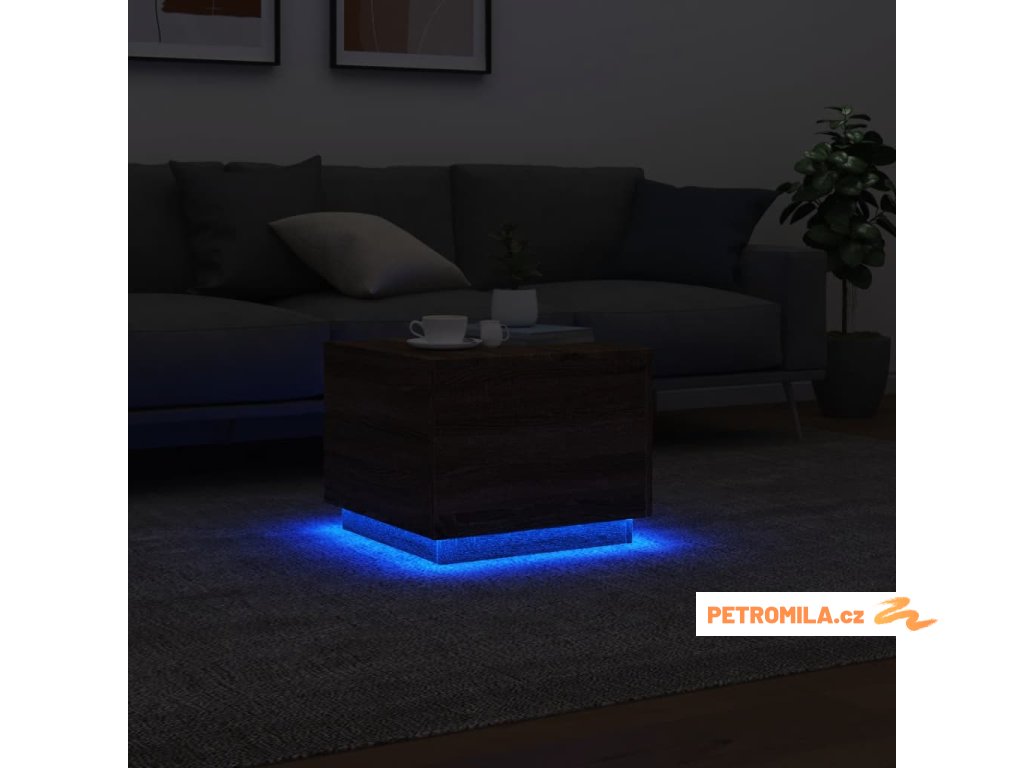 Konferenční stolek s LED osvětlením hnědý dub 50 x 50 x 40 cm