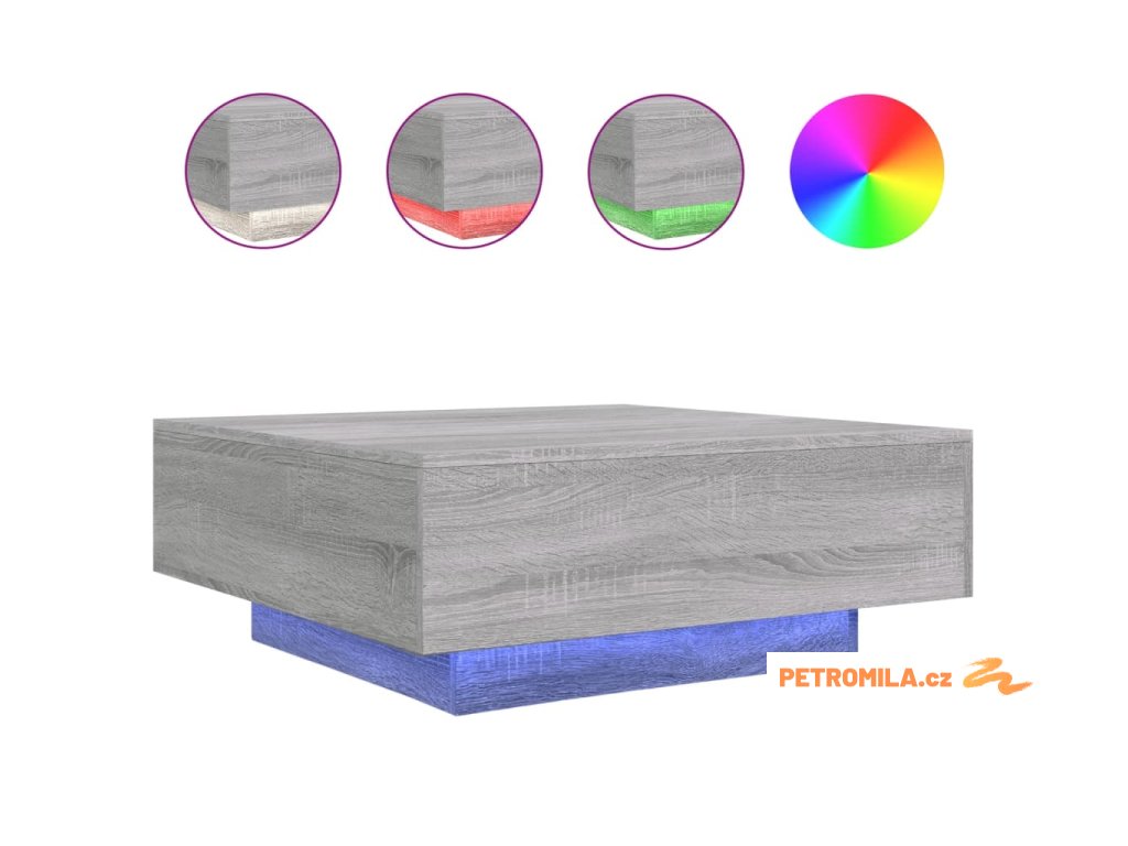 Konferenční stolek s LED osvětlením šedý sonoma 80 x 80 x 31 cm