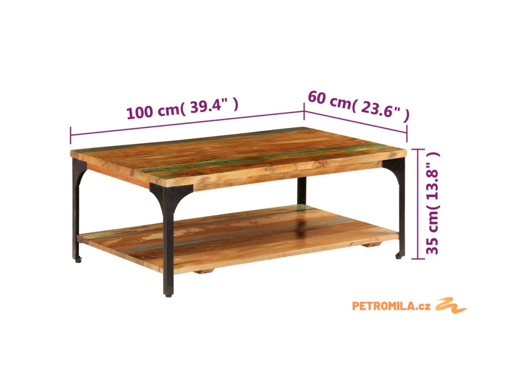 Konferenční stolek s policí 100 x 60 x 35 cm recyklovaný masiv