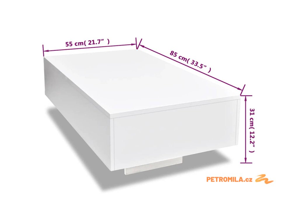 Tento obdélníkový konferenční stolek ve vysoce lesklé bílé barvě má moderní a elegantní vzhled a krásně doplní nábytek ve vašem domě.