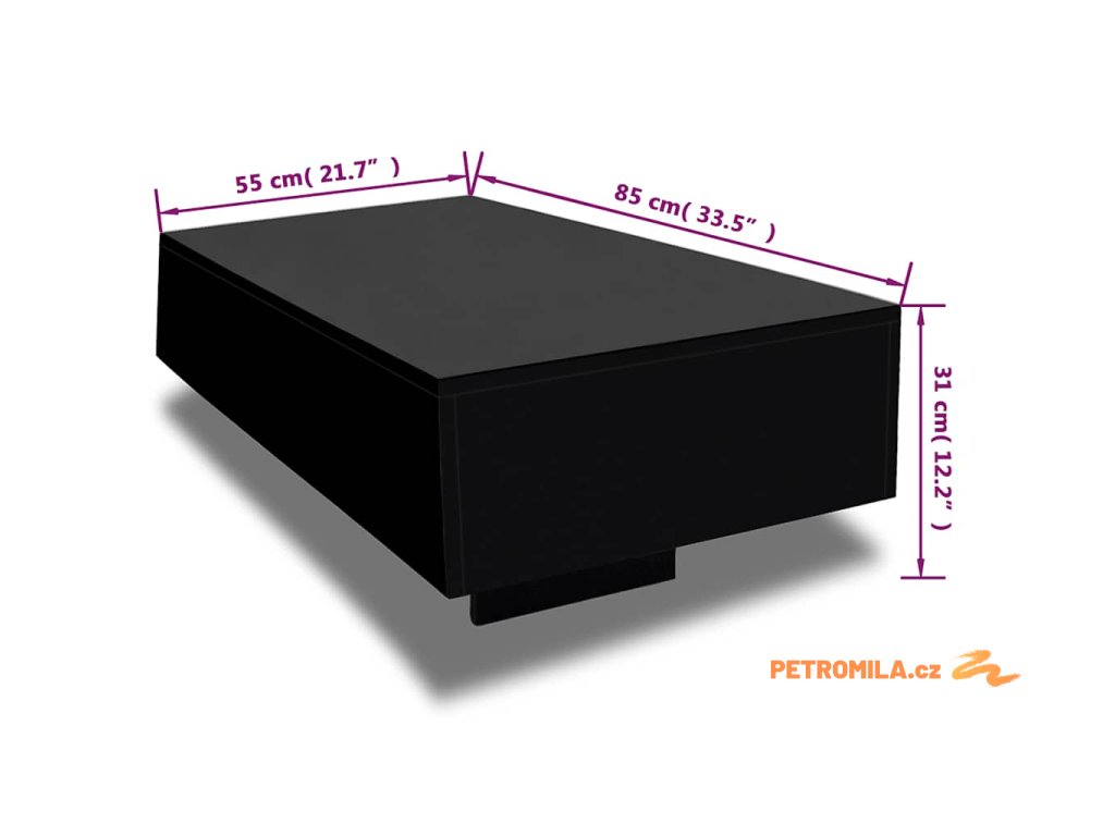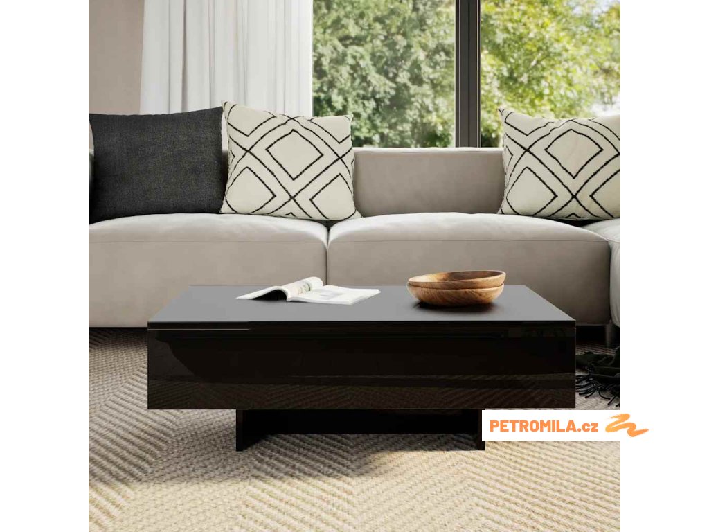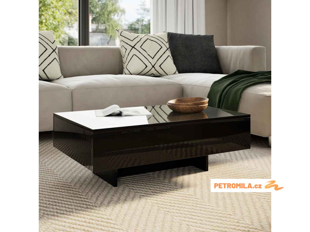 Tento obdélníkový konferenční stolek ve vysoce lesklé černé barvě má moderní a elegantní vzhled a krásně doplní nábytek ve vašem domě.