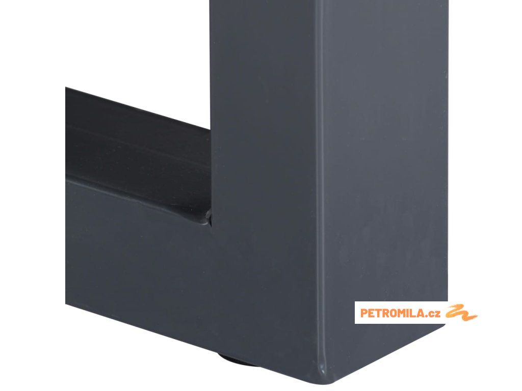 - Materiál: masivní akáciové dřevo s šedou povrchovou úpravou (stolní deska) a železo s práškovým nástřikem (nohy)