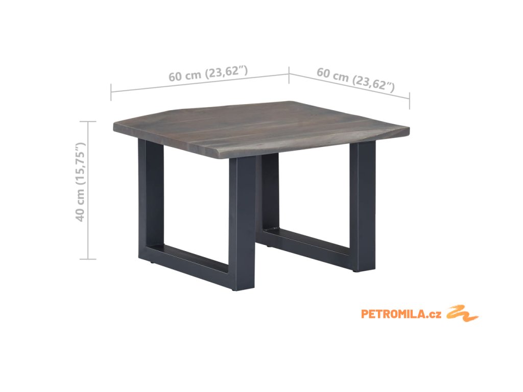Konferenční stolek s živou hranou šedý 60x60x40 cm dřevo akácie