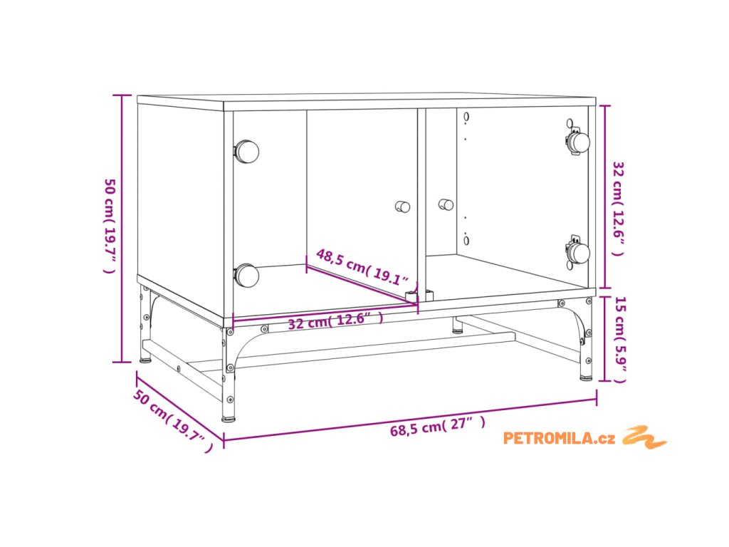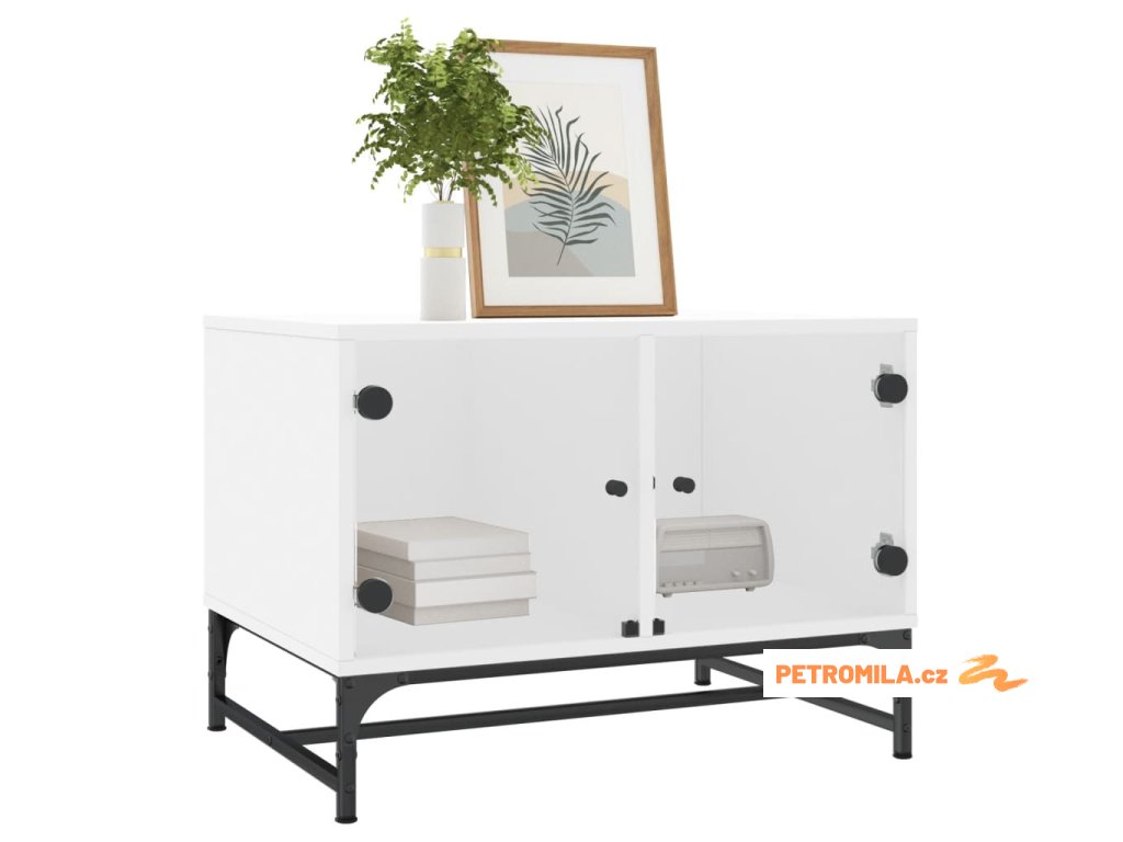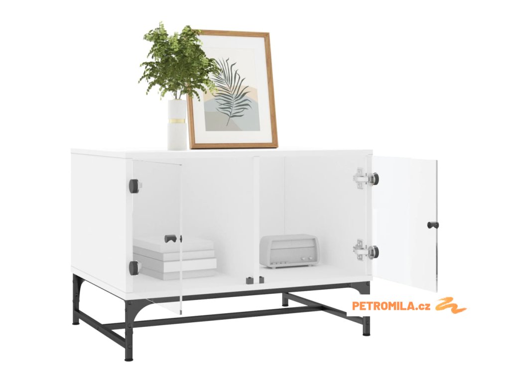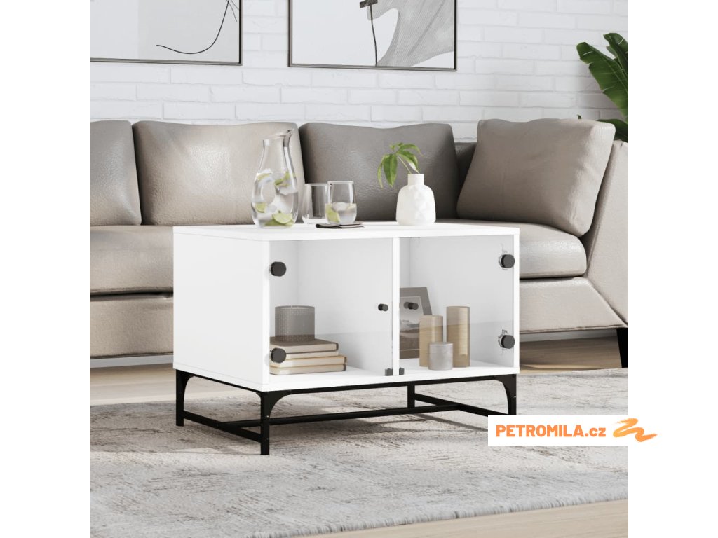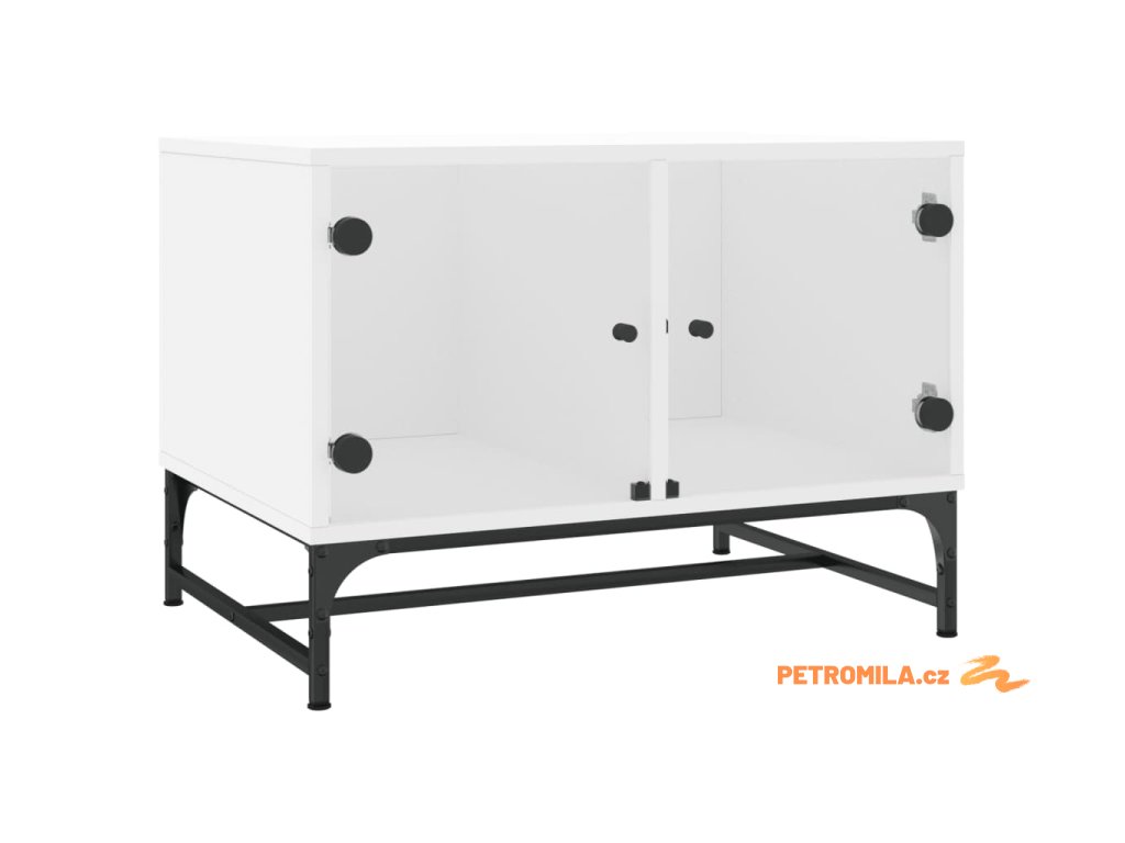 Konferenční stolek se skleněnými dvířky bílý 68,5 x 50 x 50 cm