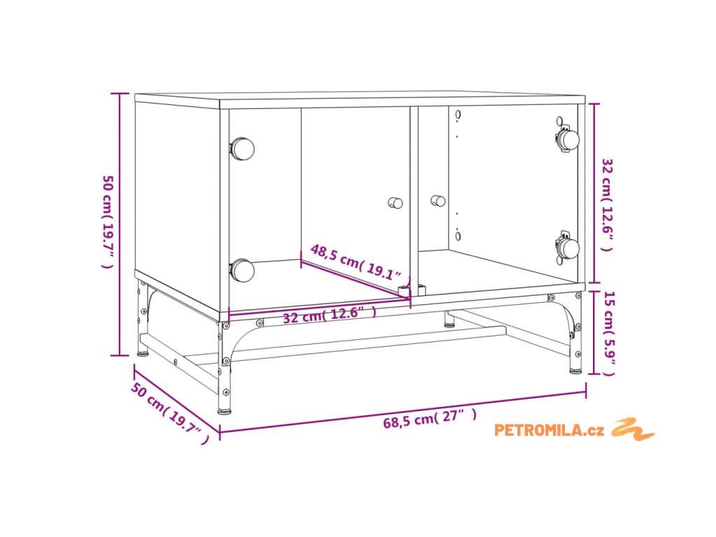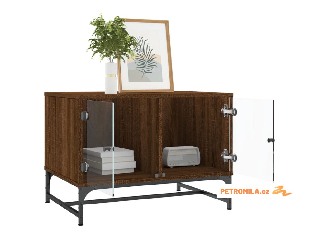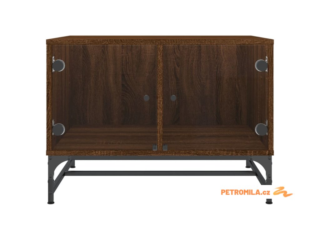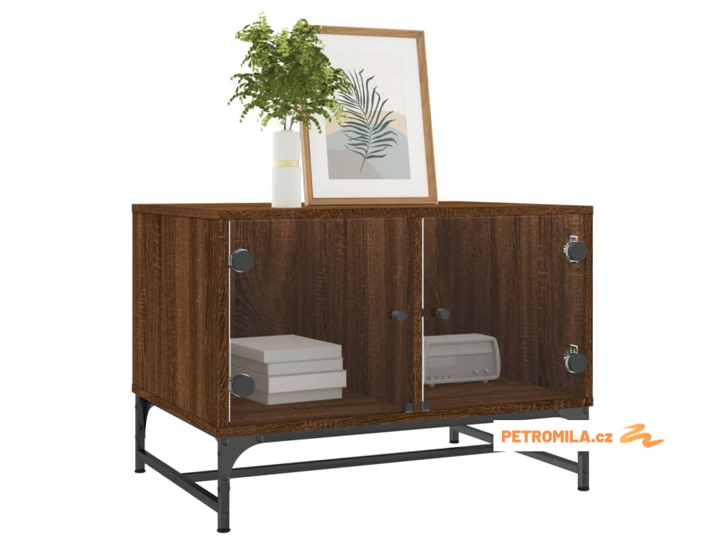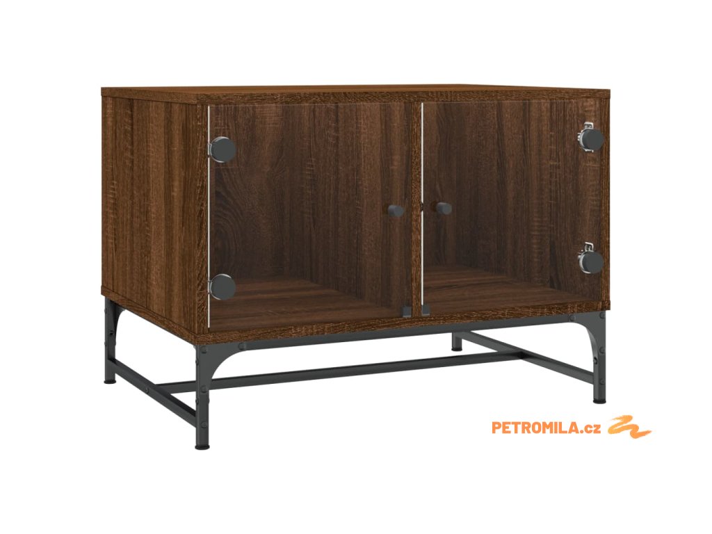 Konferenční stolek se skleněnými dvířky hnědý dub 68,5x50x50 cm