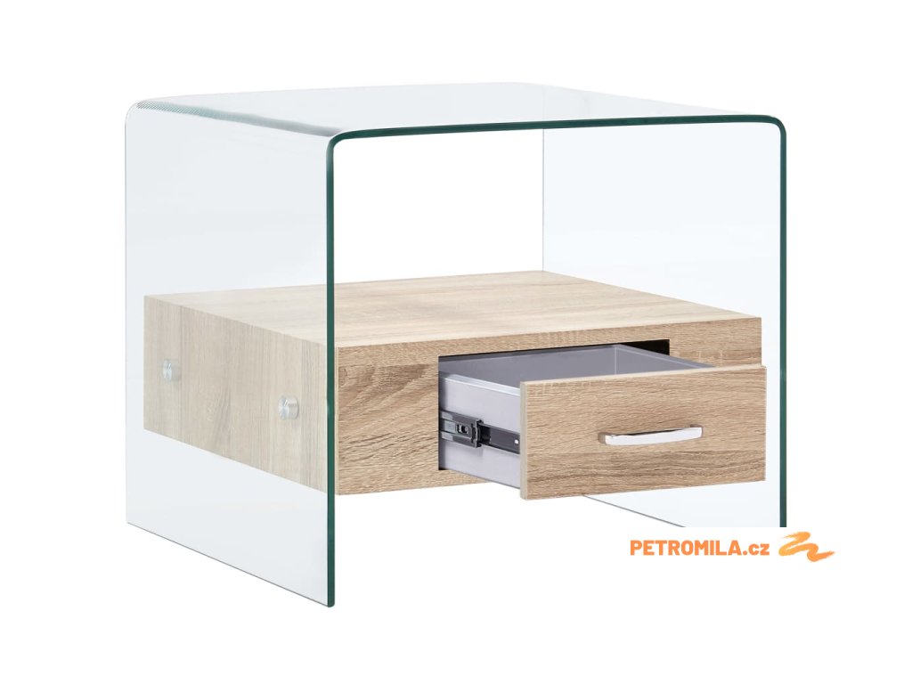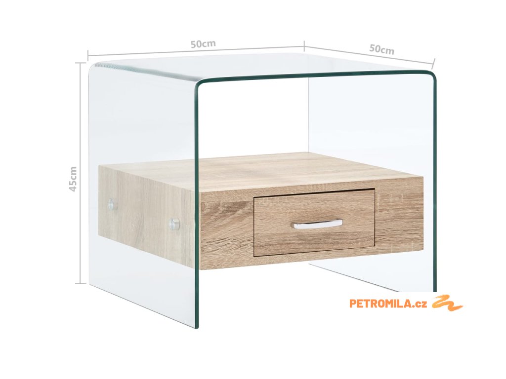 Konferenční stolek se zásuvkou 50 x 50 x 45 cm tvrzené sklo