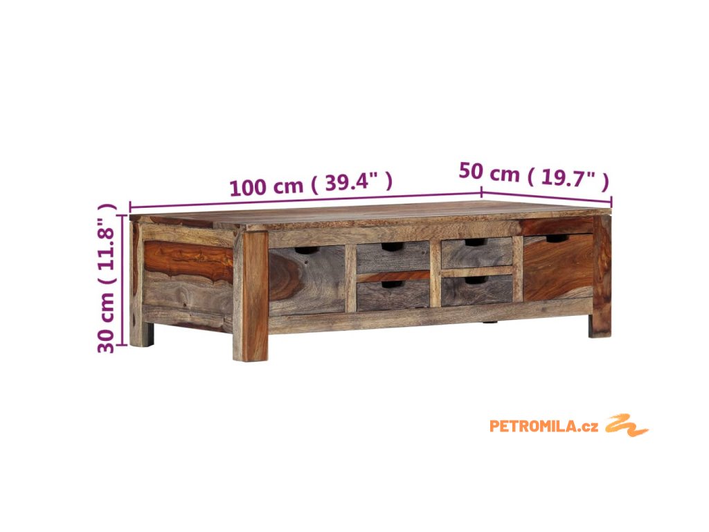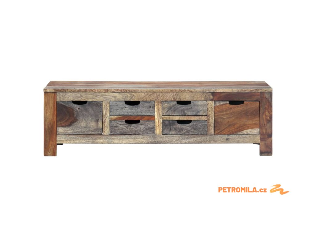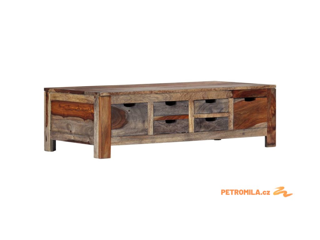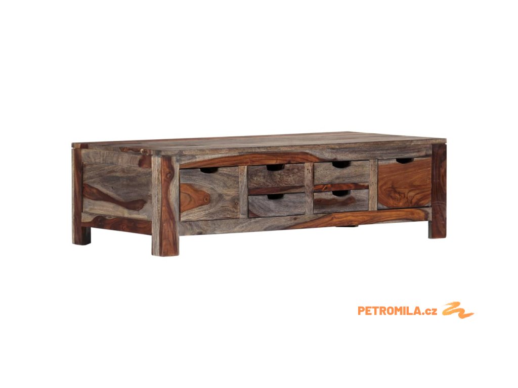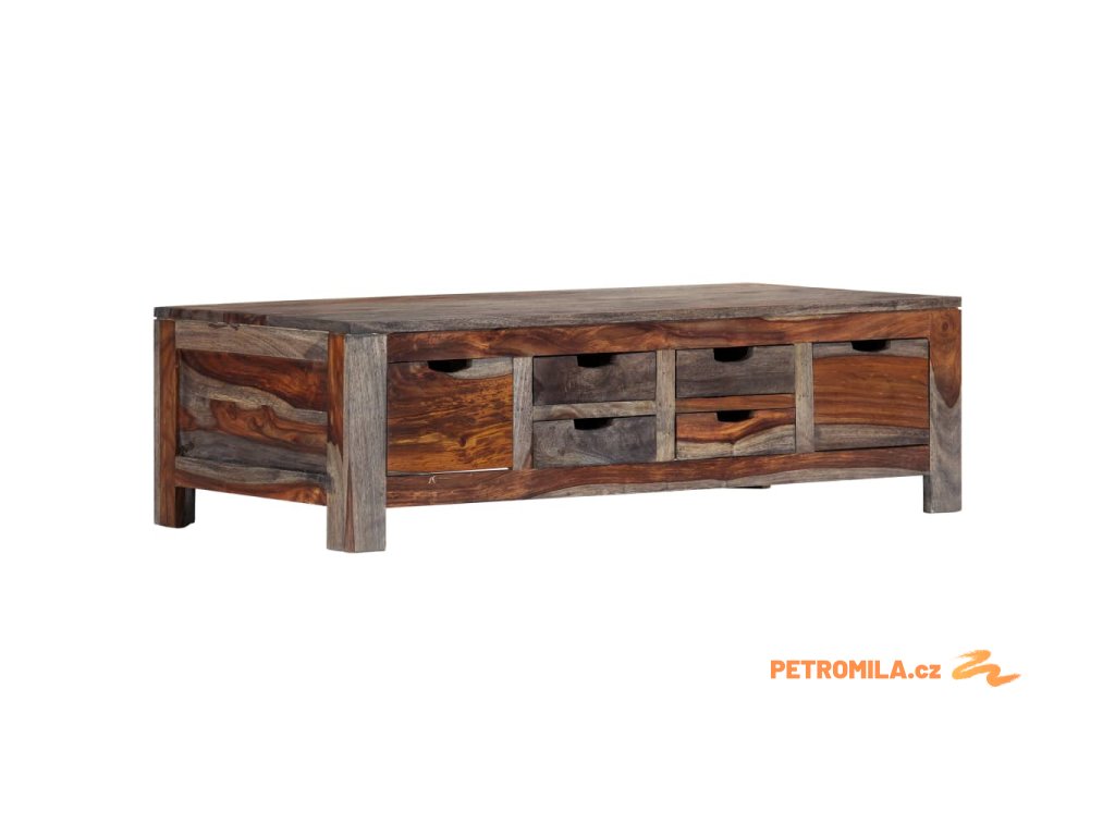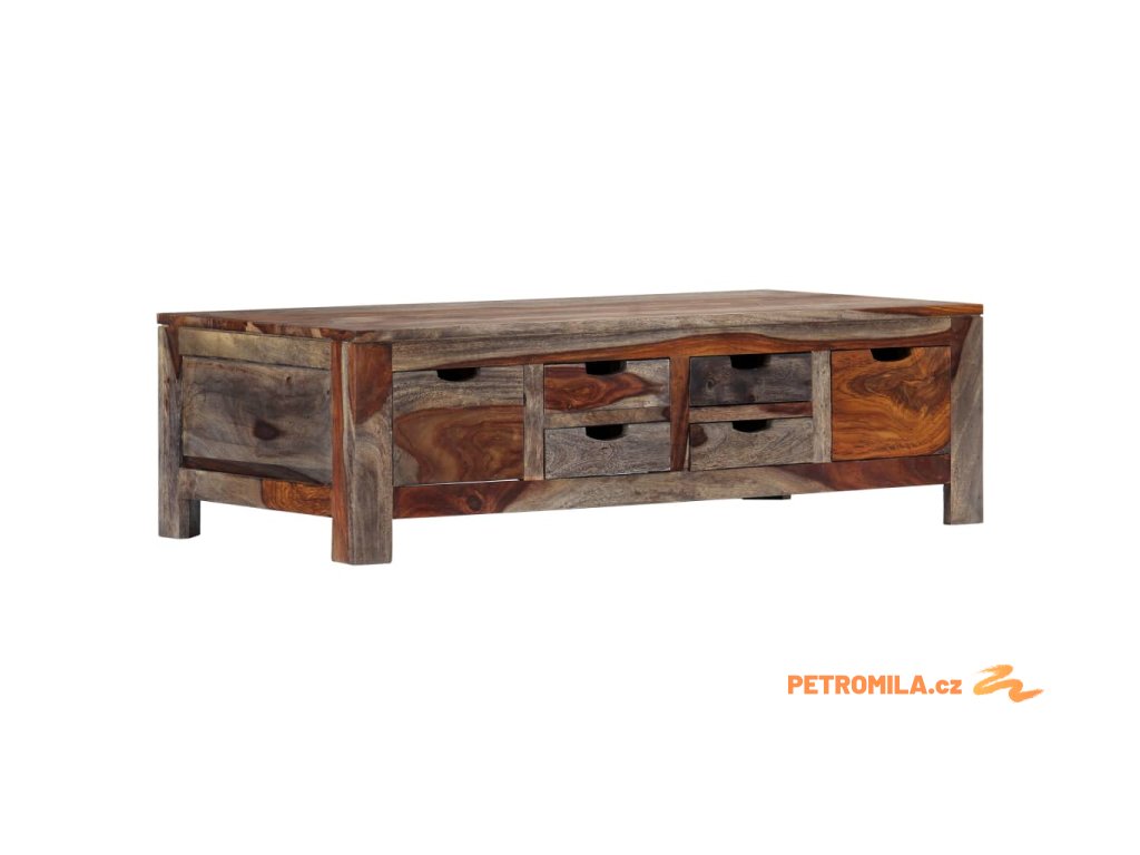 Tento praktický konferenční stolek je perfektní pro ukládání multimediálních zařízení, knížek a časopisů nebo různých maličkostí, které chcete mít po ruce. Má robustní konstrukci a je zhotoven z akáciového dřeva, takže je mimořádně odolný. Akácie, jemuž se někdy také říká rosewood nebo palisandr, je tropické tvrdé dřevo proslulé svou bohatou kresbou. Každá fáze výrobního procesu je prováděna s maximální péčí, ať už se jedná o leštění, natírání anebo lakování. Stolek disponuje 6 zásuvkami, kam si můžete ukládat všelijaké drobnosti, a otevřenou přihrádkou pro uspořádání svých multimediálních zařízení, herních konzolí a časopisů.