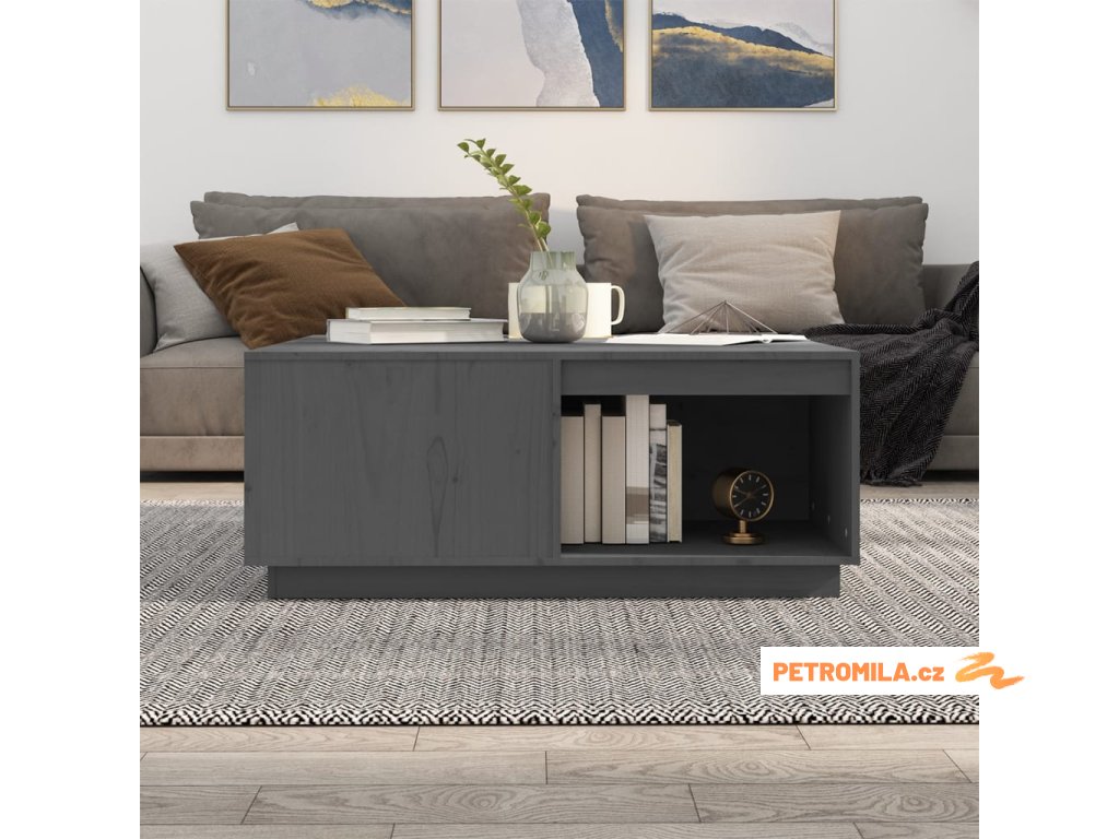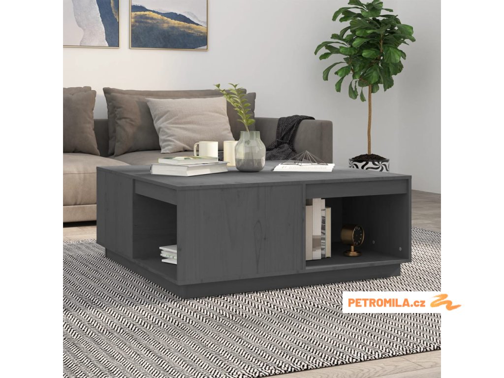 Konferenční stolek šedý 100x101x40,5 cm masivní borové dřevo