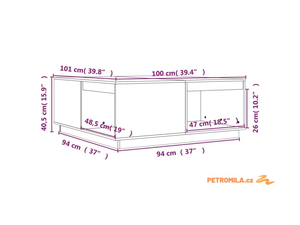 - Rozměry: 100 x 101 x 40,5 cm (Š x H x V)