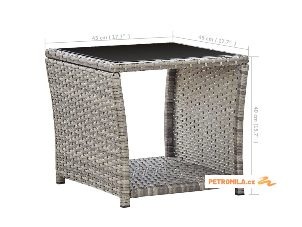 Konferenční stolek šedý 45 x 45 x 40 cm polyratan a sklo