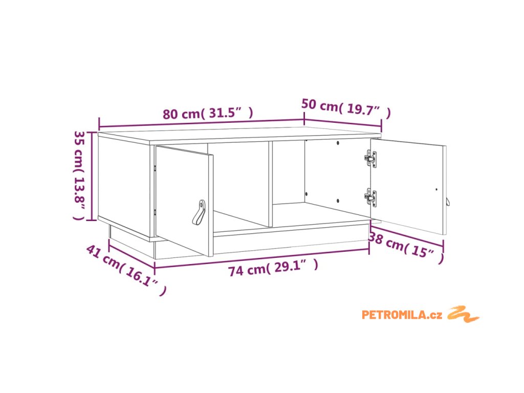 Konferenční stolek šedý 80 x 50 x 35 cm masivní borové dřevo