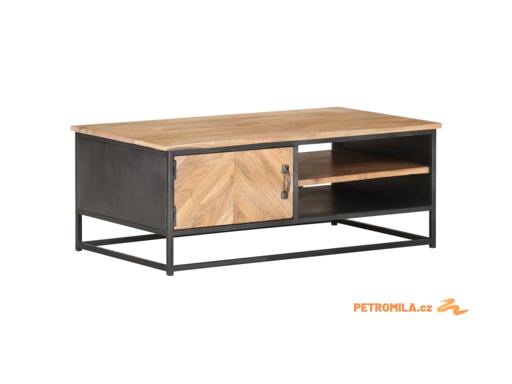 Tento stolek k pohovce je vyrobený z masivního akácie, tvrdého dřeva s hustou strukturou. Krásně navržený stolek je stabilní, odolný a velmi atraktivní. Zásluhou vynikajícího řemeslného zpracování a osobité kresby dřeva je každý kus jedinečný a jemně se liší od ostatních. Nohy z oceli s práškovým nástřikem jsou zárukou bytelné konstrukce stolku. Stolek má 2 otevřené přihrádky a jednu přihrádku s dvířky, kam si můžete ukládat časopisy, knihy atd. Bytelná stolní deska je ideální pro servírování nápojů, jídla a vystavování dekorací.