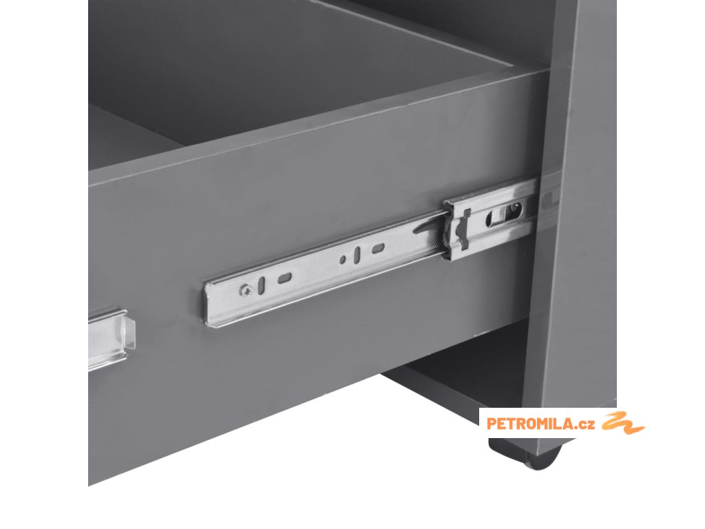 Stolek k pohovce je vyroben z kompozitního dřeva s vysoce lesklou povrchovou úpravou, která mu propůjčuje rafinovaný vzhled a zaručuje jeho stabilitu a odolnost. Po obou stranách ho můžete rozšířit, takže budete mít vždy spoustu prostoru k odkládání časopisů, knih, dálkových ovladačů a dalších různých drobností, jež chcete mít na dosah ruky. Stolek je rovněž vybaven kolečky s brzdou pro snadné přesouvání nebo zajištění na místě. Sestavení konferenčního stolku je jednoduché.
