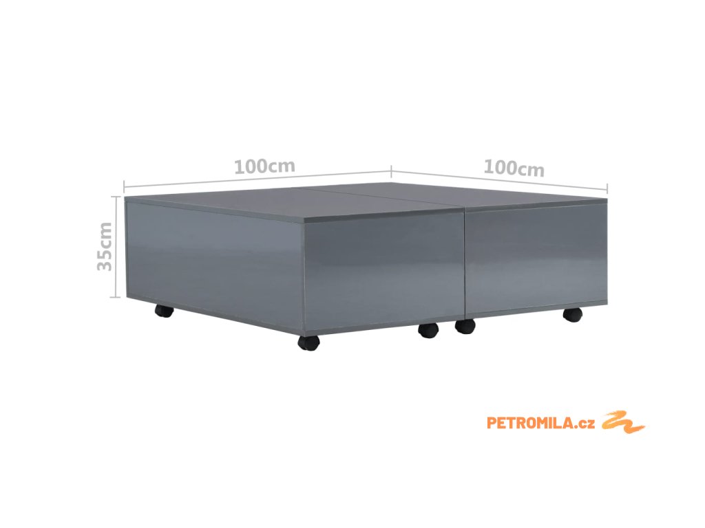 Konferenční stolek šedý s vysokým leskem 100 x 100 x 35 cm