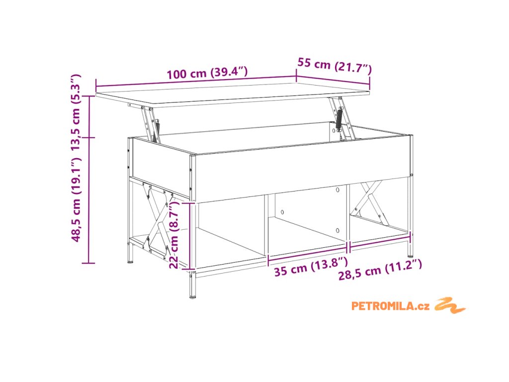 - Design se zvedací deskou: Stolní deska tohoto stolku k pohovce se dá hladce zvednout do pohodlné výšky, a tím jej přeměnit na místo, kde můžete pracovat nebo stolovat.