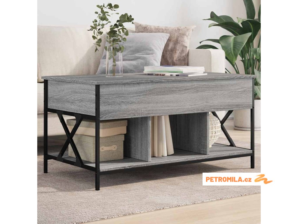 Konferenční stolek šedý sonoma 100 x 55 x 50 cm kompozit a kov
