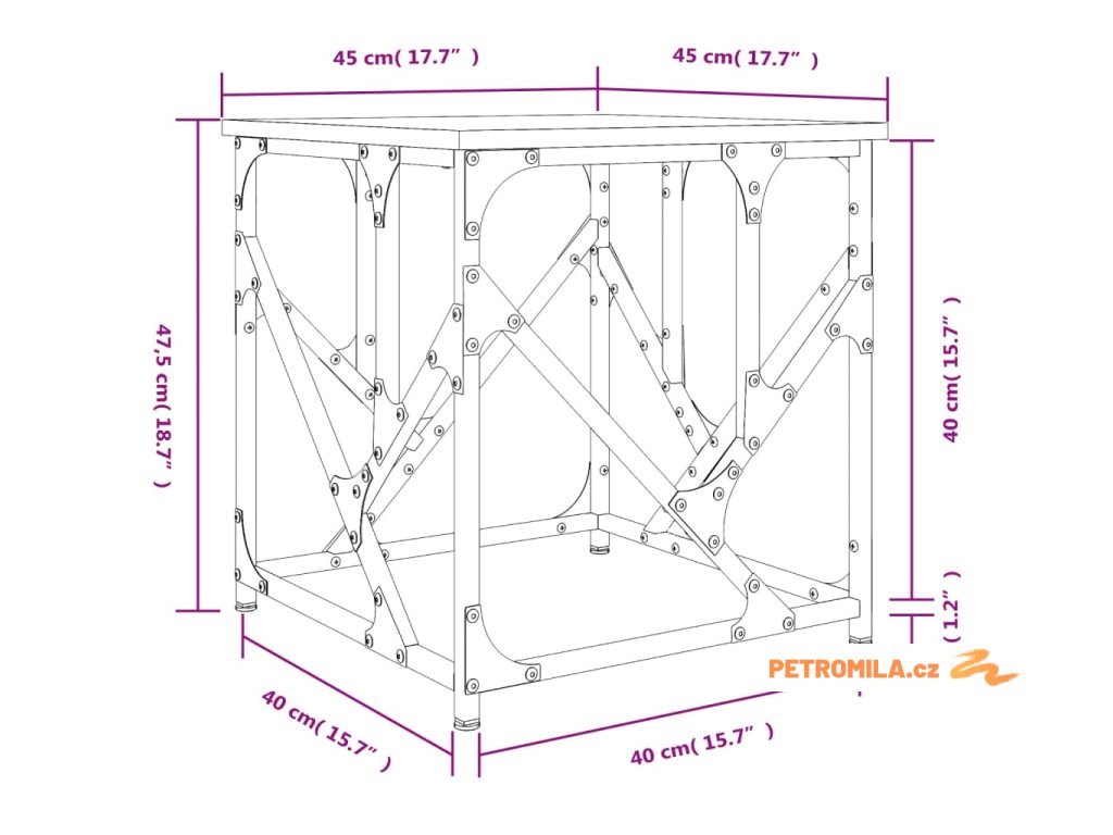 - Rozměry: 45 x 45 x 47,5 cm (D x Š x V)