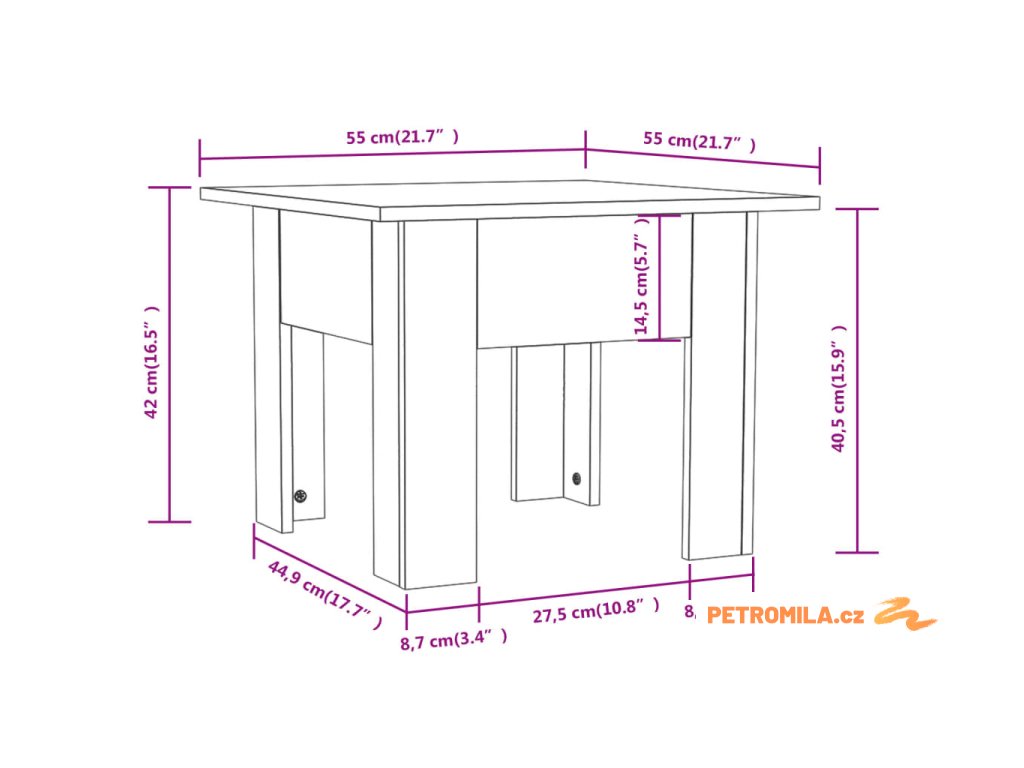 Konferenční stolek šedý sonoma 55 x 55 x 42 cm dřevotříska