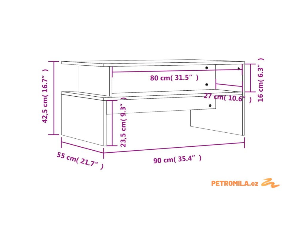 Konferenční stolek šedý sonoma 90x55x42,5 cm kompozitní dřevo