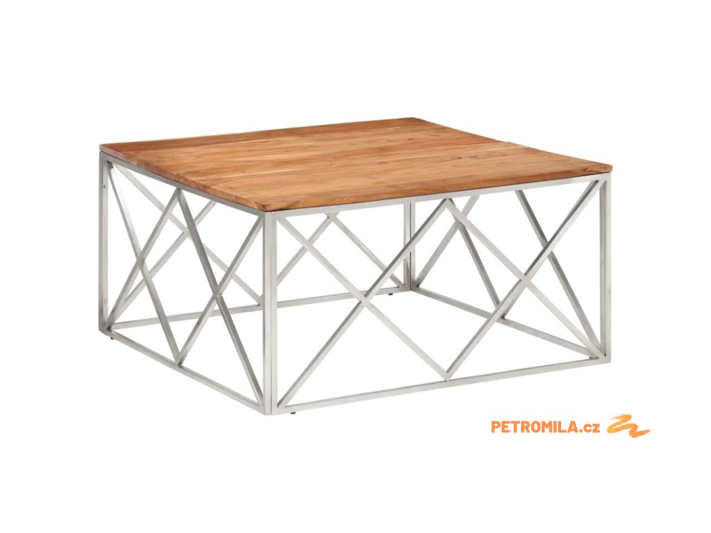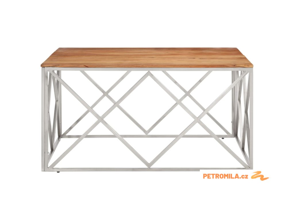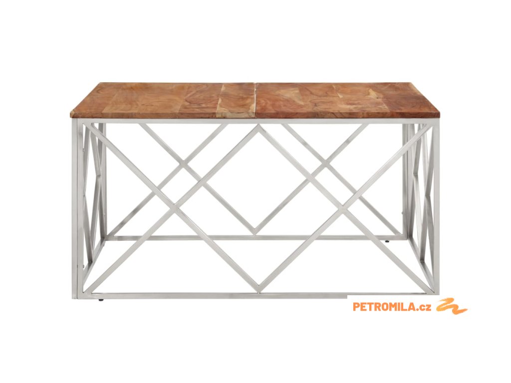 Konferenční stolek stříbrný nerezová ocel a masivní akácie