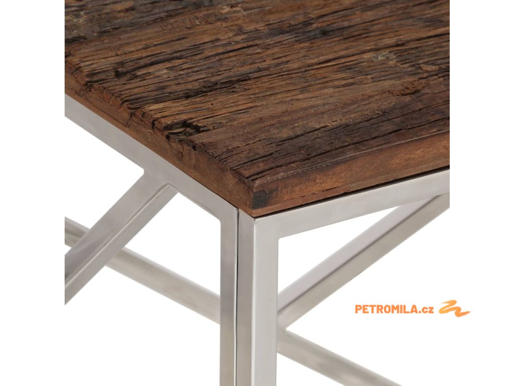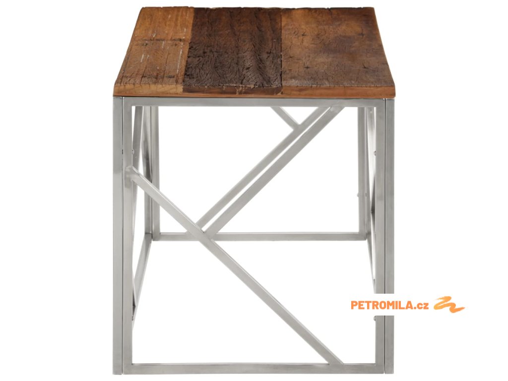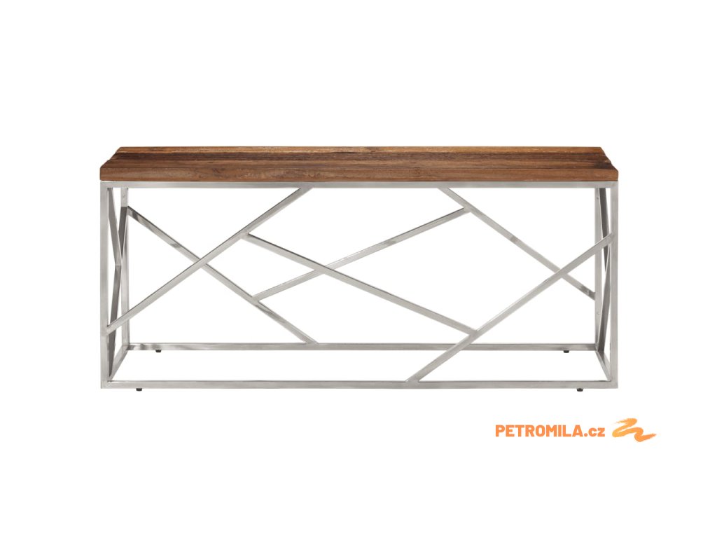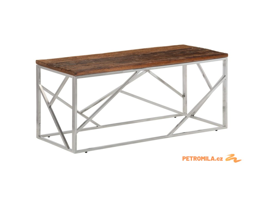 Konferenční stolek stříbrný nerezová ocel a pražcové dřevo