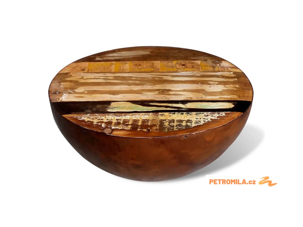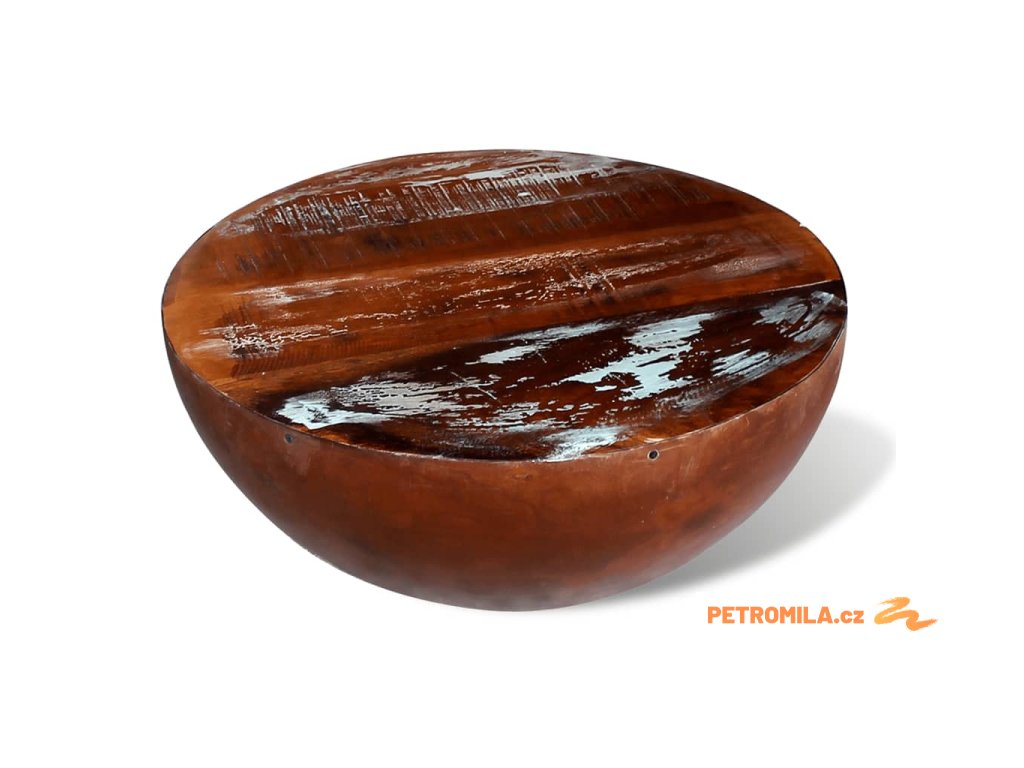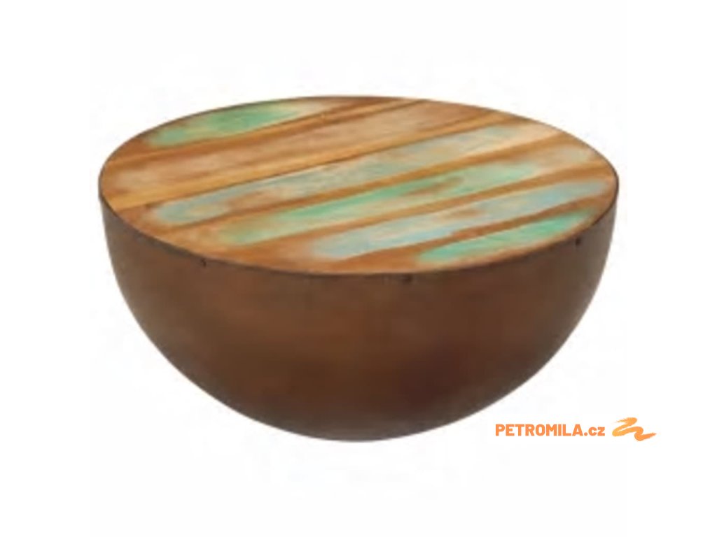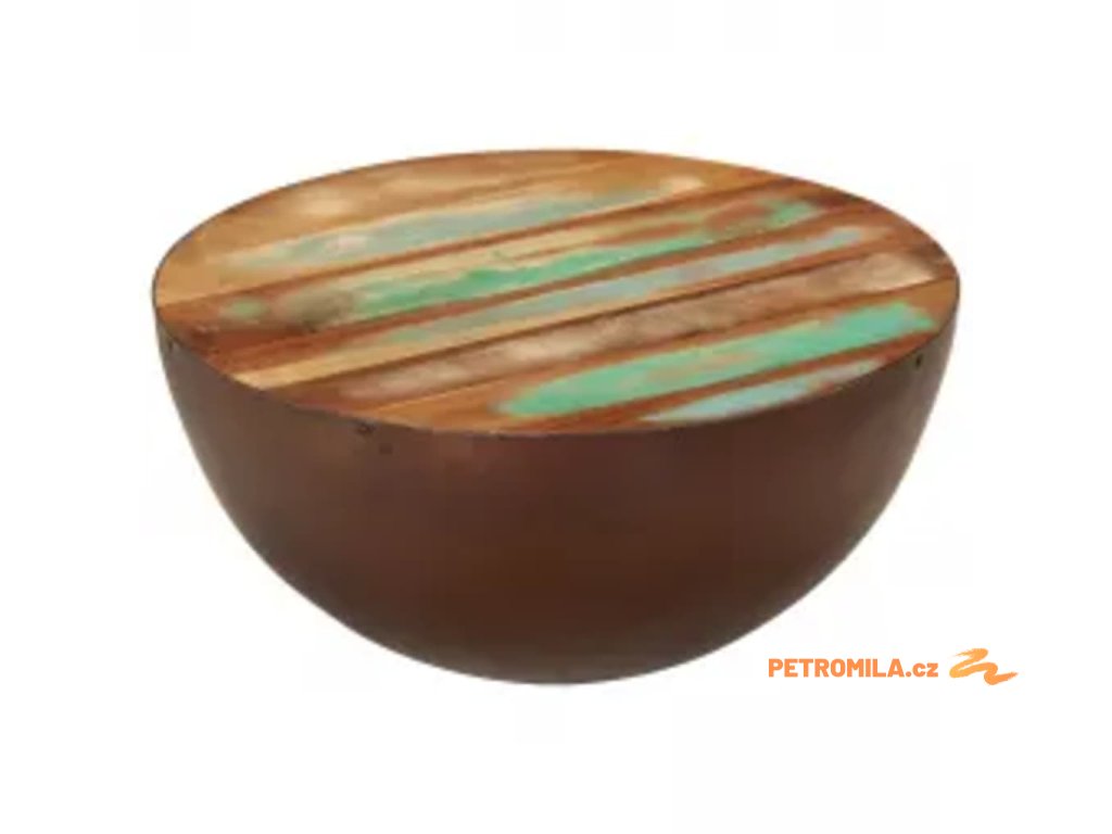 Konferenční stolek tvar mísy ocel a masivní recyklované dřevo
