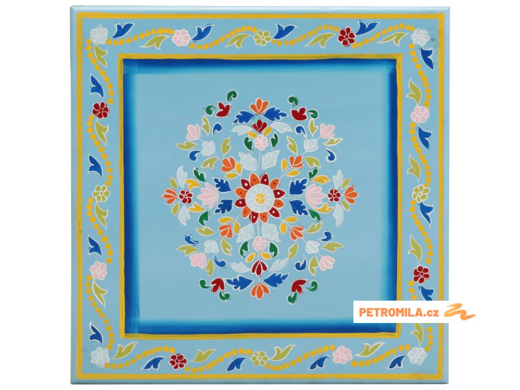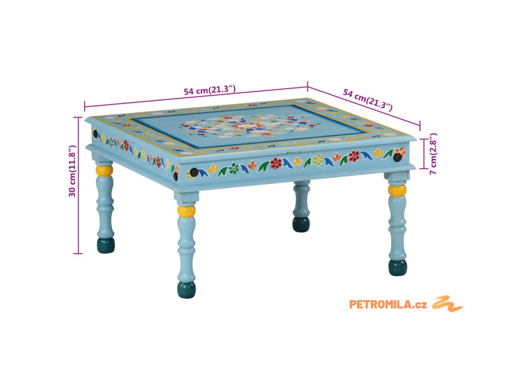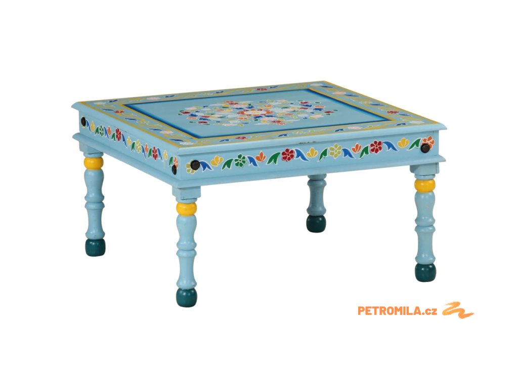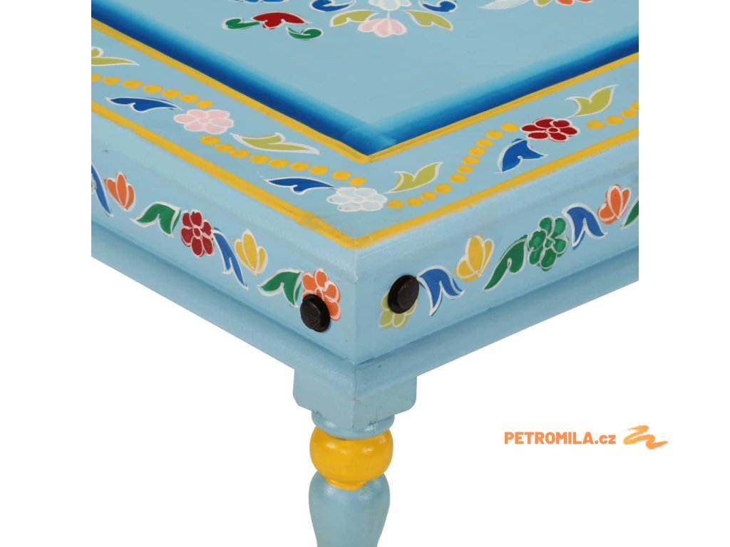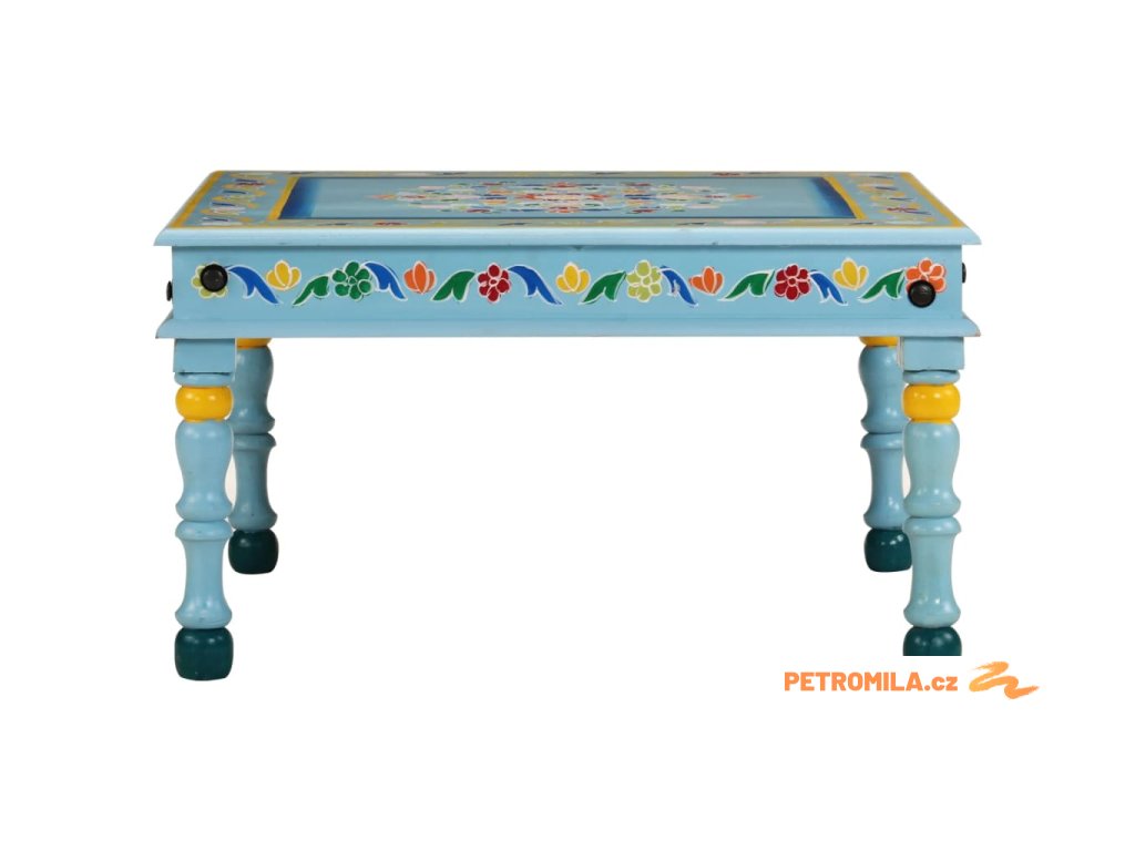 Konferenční stolek tyrkysový ručně malovaný masivní mangovník