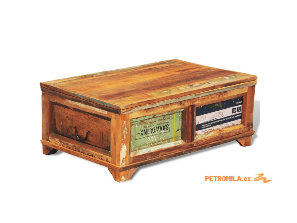 Konferenční stolek úložný prostor vintage recyklované dřevo