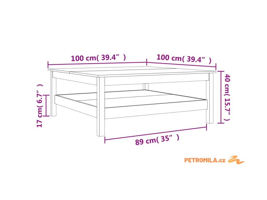 Konferenční stolek voskově hnědý 100x100x40 cm masivní borovice