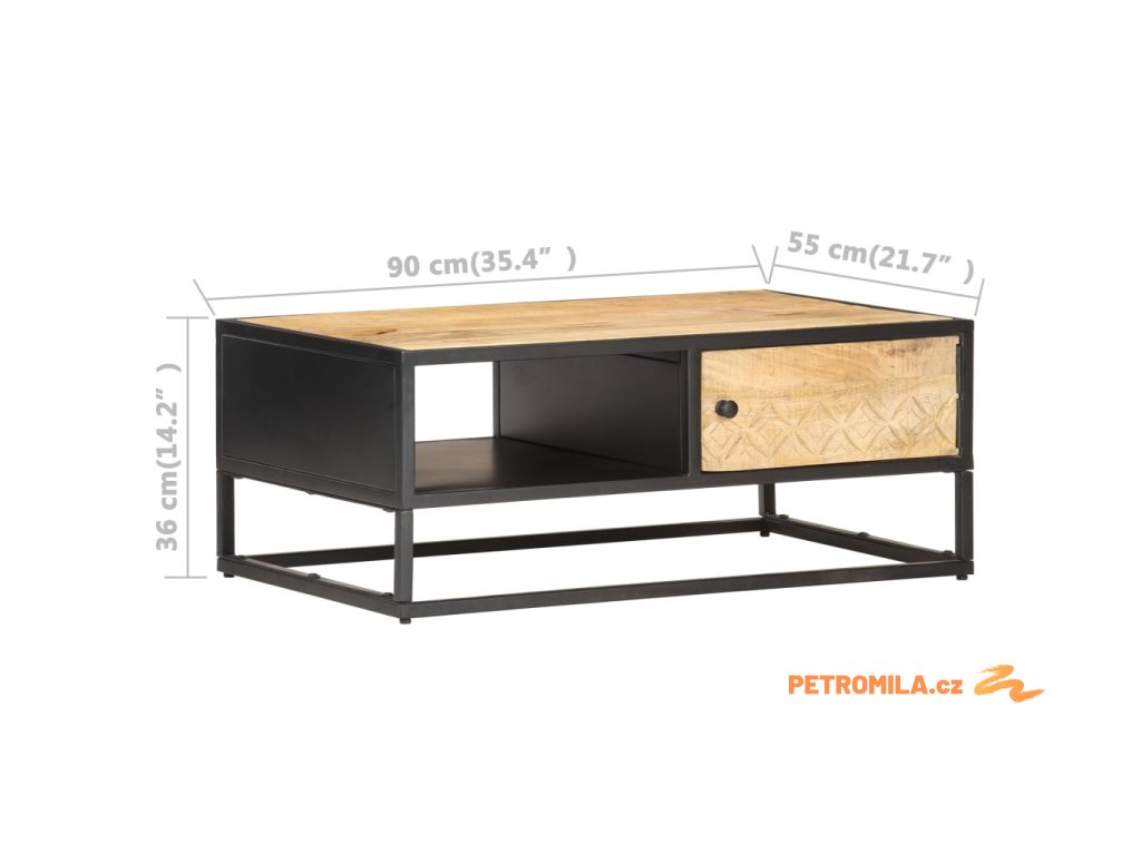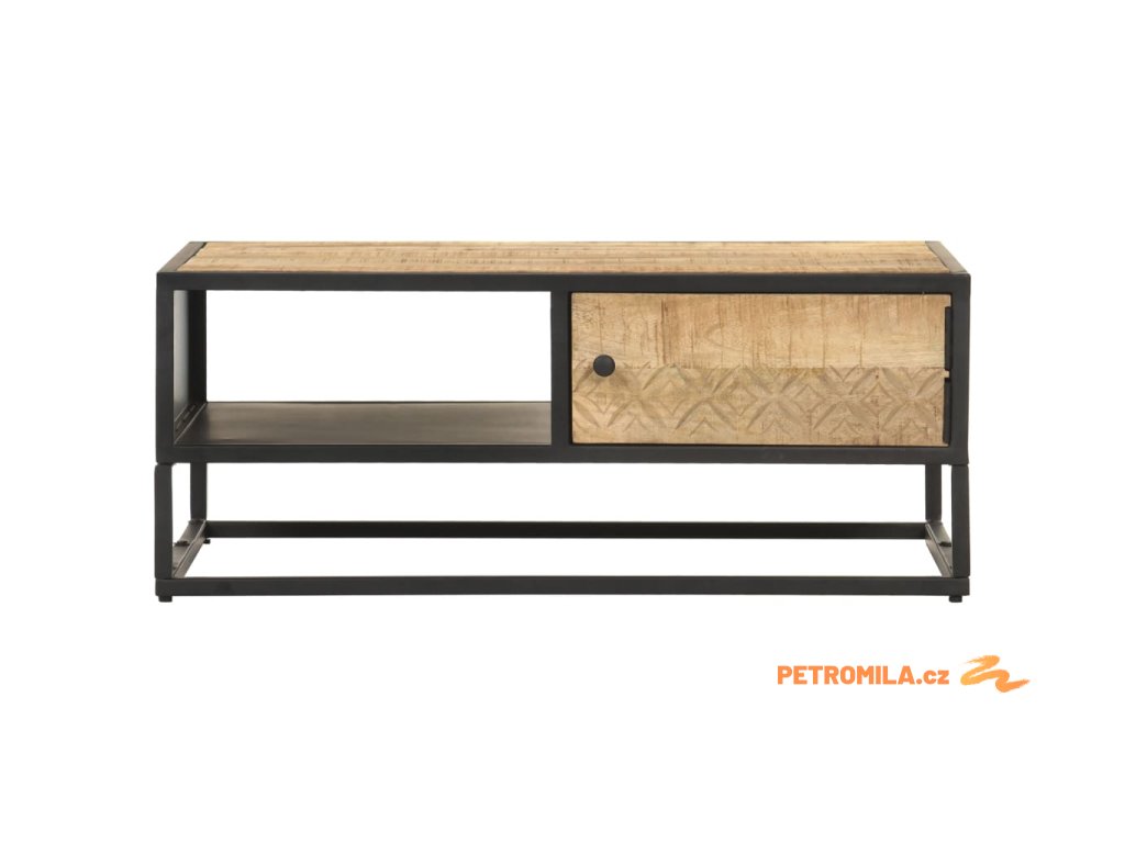 Tento konferenční stolek je ručně vyrobený z hrubého mangovníkového dřeva, které je masivní, stabilní, má dlouhou životnost a je také krásné. Výjimečný retro styl stolku je zásluhou zručného řemeslného zpracování. Každý krok výrobního procesu se provádí s maximální péčí, ať už jde o leštění, natírání nebo lakování. Práškově lakovaný železný rám zvyšuje robustnost nábytku. Jedny dvířka s vyřezávaným vzorem a jedna otevřená přihrádka nabízí dostatek prostoru pro uložení a uspořádání vašich knih, dálkových ovladačů nebo jiných osobních věcí, a proto budou všechny vaše věci úhledně uklizené.