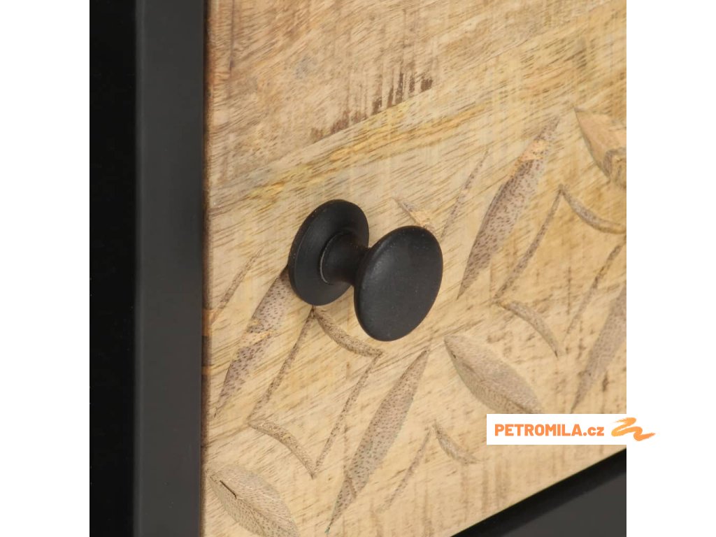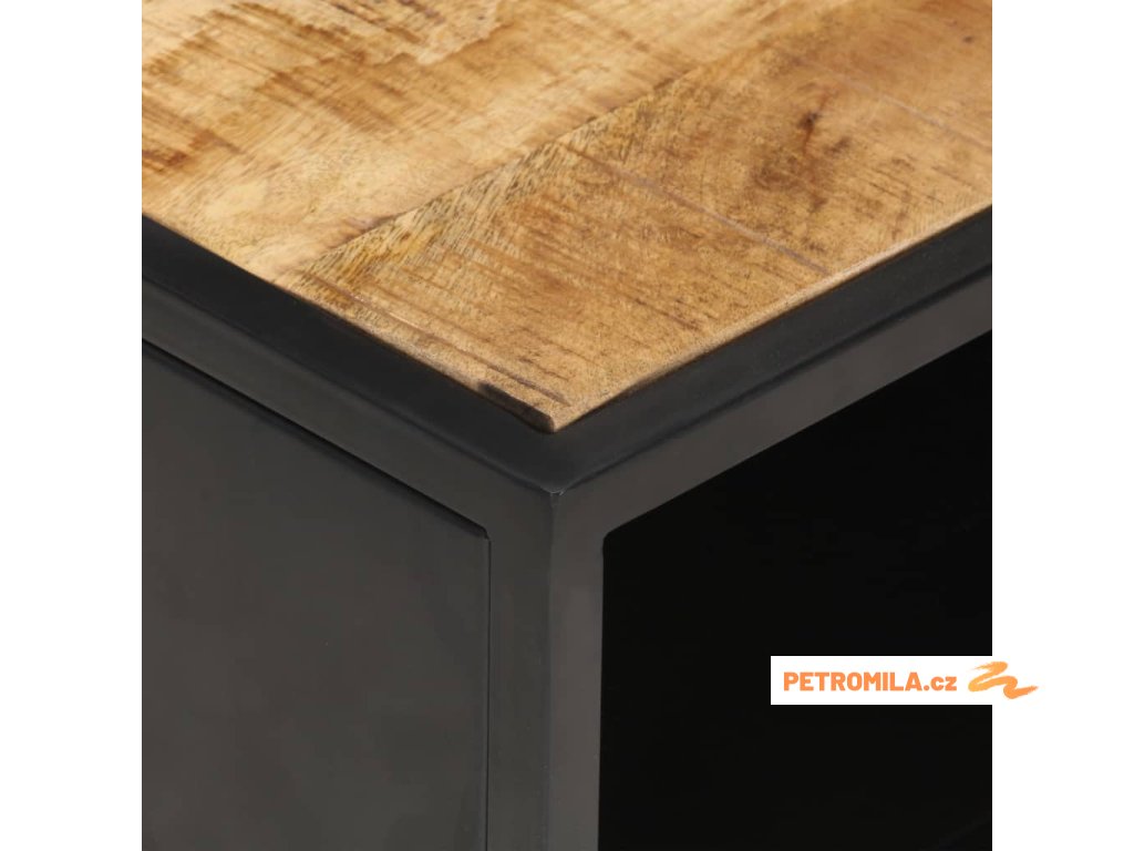 - Materiál: hrubé mangovníkové dřevo s přírodním povrchem, práškově lakované železo