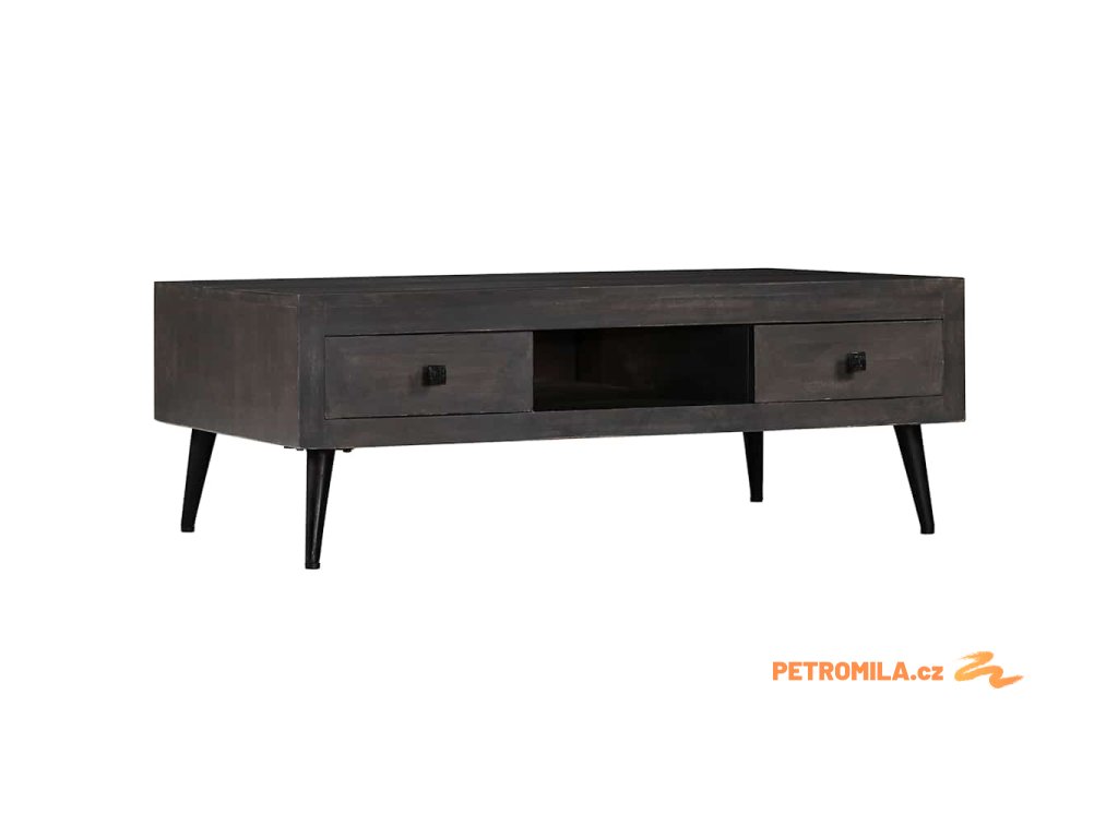 Dřevěný konferenční stolek je ručně vyroben z masivního mangového dřeva, které je pevné, stabilní a krásné, a řemeslné zpracování mu dodává působivý retro styl. Každá fáze výrobního procesu se provádí s největší péčí, ať už se jedná o leštění nebo lakování. Řemeslné zpracování a krásná kresba dřeva dává každému kusu nábytku jeho jedinečný a od všech ostatních mírně odlišný charakter. Tento stolek má 2 zásuvky a 1 přihrádku a nabízí dostatek úložného prostoru, abyste měli důležité věci přehledně a na dosah. Snadno se sestavuje.