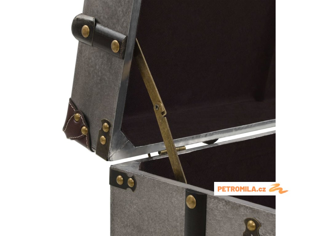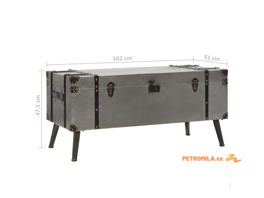 Tento odolný a překrásný stolek je vyroben z MDF s hliníkovým povrchem a s potahem z netkané textilie. Pevné ocelové nohy přispívají k jeho rustikálnímu šarmu. Stolní deska se výborně hodí k pokládání nápojů nebo k vystavování váz, květináčů, košíků s ovocem a jiných dekorativních předmětů. Úložný box disponuje dvěma vnitřními přihrádkami, které vám poskytnou spoustu prostoru, kam můžete ukládat přikrývky, knížky, časopisy, dálkové ovladače a další předměty, které nechcete mít na očích, ale přesto po ruce. Díky měkkým a pohodlným rukojetím lze zavazadlový konferenční stolek snadno přesouvat po celém obývacím pokoji.