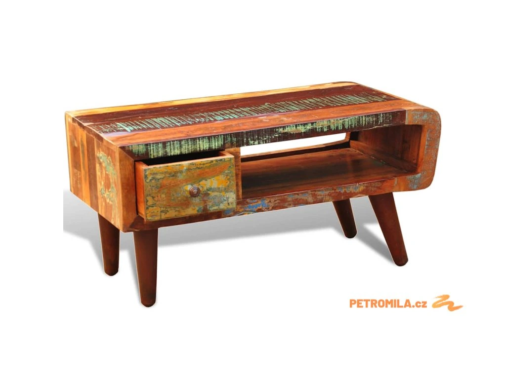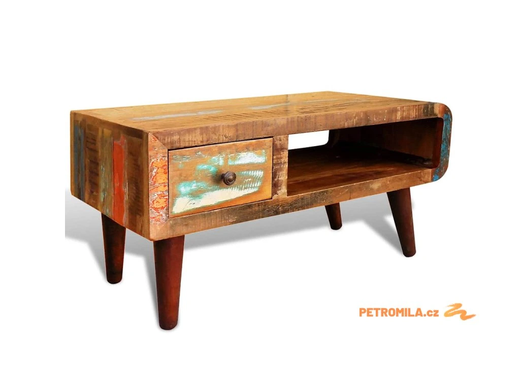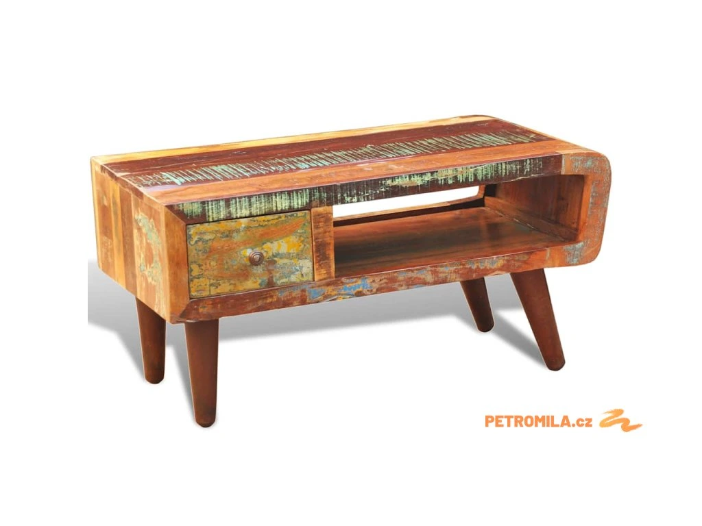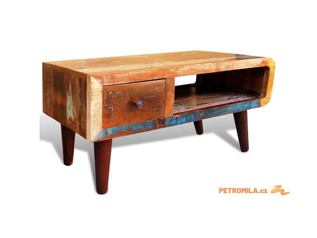 Konferenční stolek zaoblený tvar 1 zásuvka recyklované dřevo