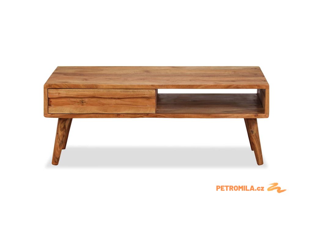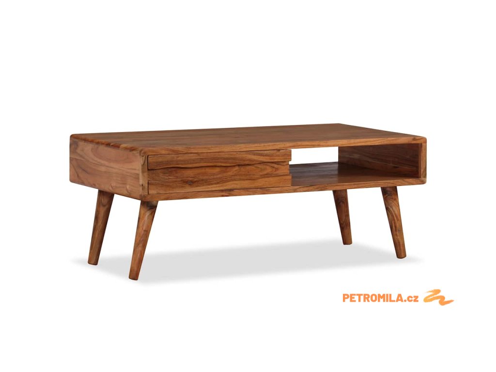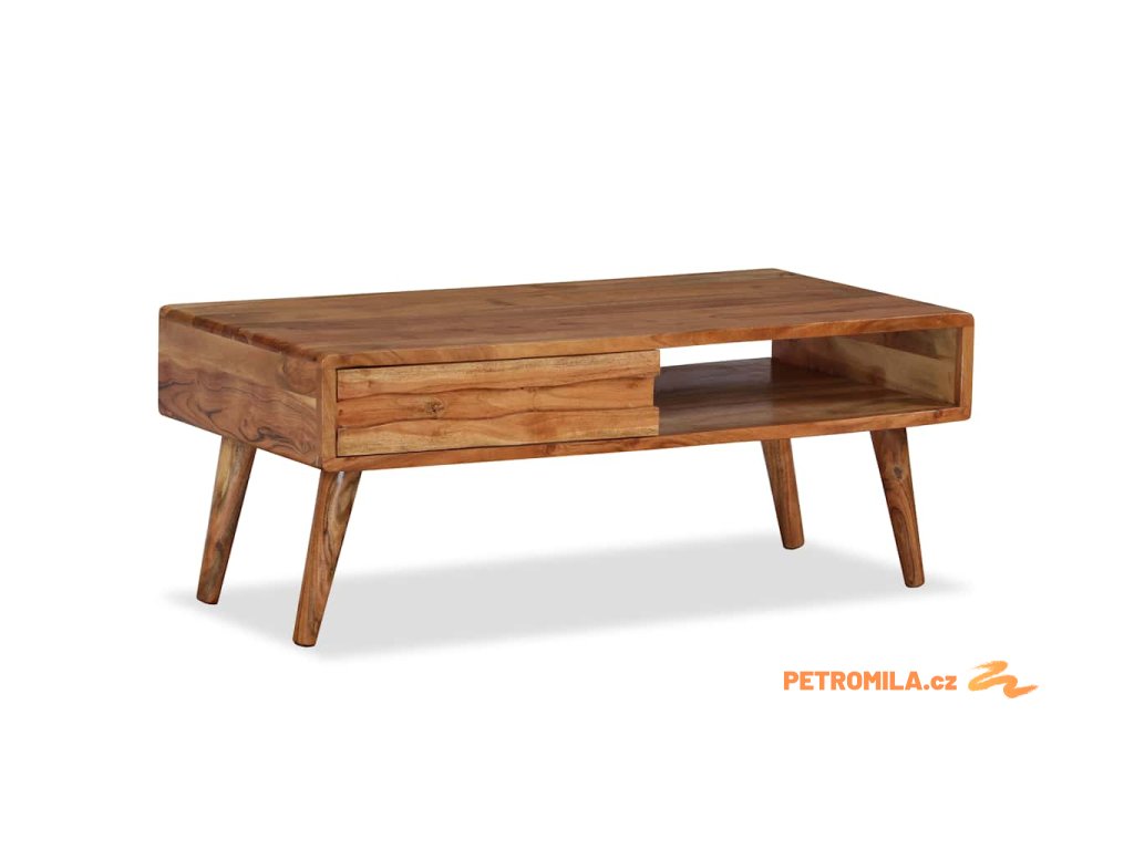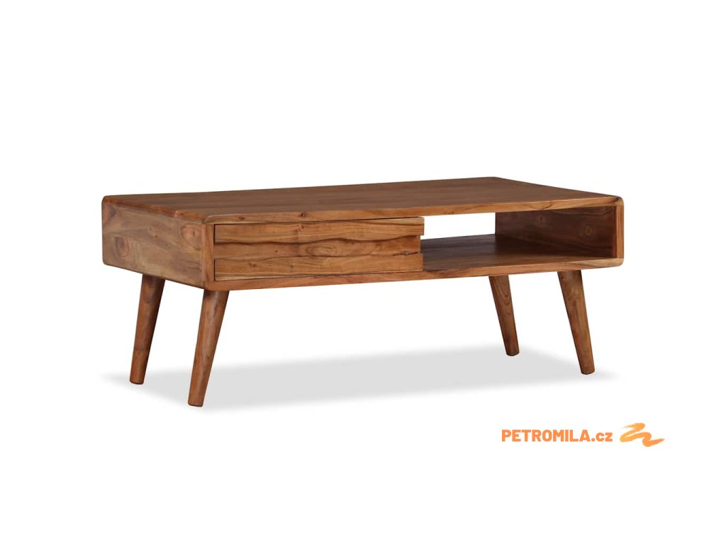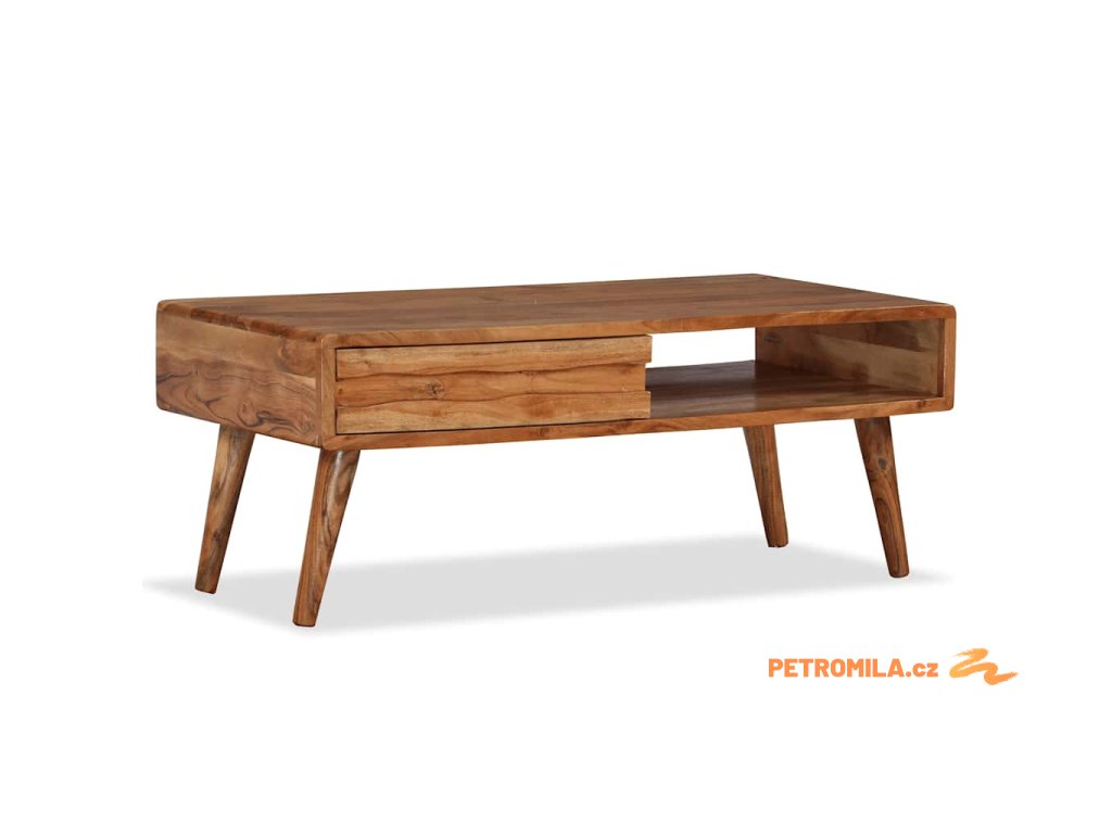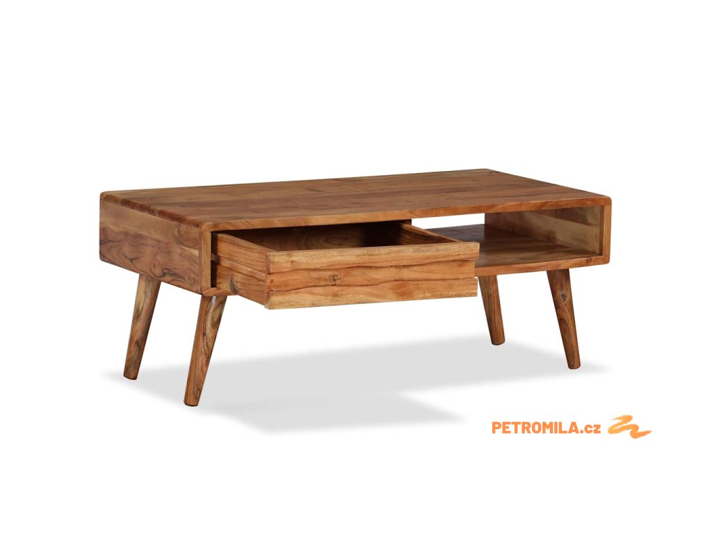 Konferenční stolek je vyroben z krásně vyleštěného, natřeného a nalakovaného akáciového masivního dřeva, které tomuto nábytku propůjčuje rafinovaný vzhled. Tento stůl je ručně vyrobený a také krásná kresba dřeva činí každý kus nábytku jedinečný a lehce odlišný od ostatních. Tento stolek má pevnou a stabilní horní desku, na kterou můžete položit vaše nápoje, jídlo, košíky s ovocem a dekorativní předměty. Konferenční stolek se vyznačuje vyřezávanou zásuvkou a přihrádkou, které poskytují dodatečný prostor k uložení vašich časopisů, knih, TV ovladačů a maličkostí, které chcete mít po ruce. Montáž je snadná.