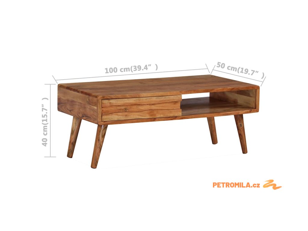 Konferenční stolek ze dřeva vyřezávaná zásuvka 100 x 50 x 40 cm