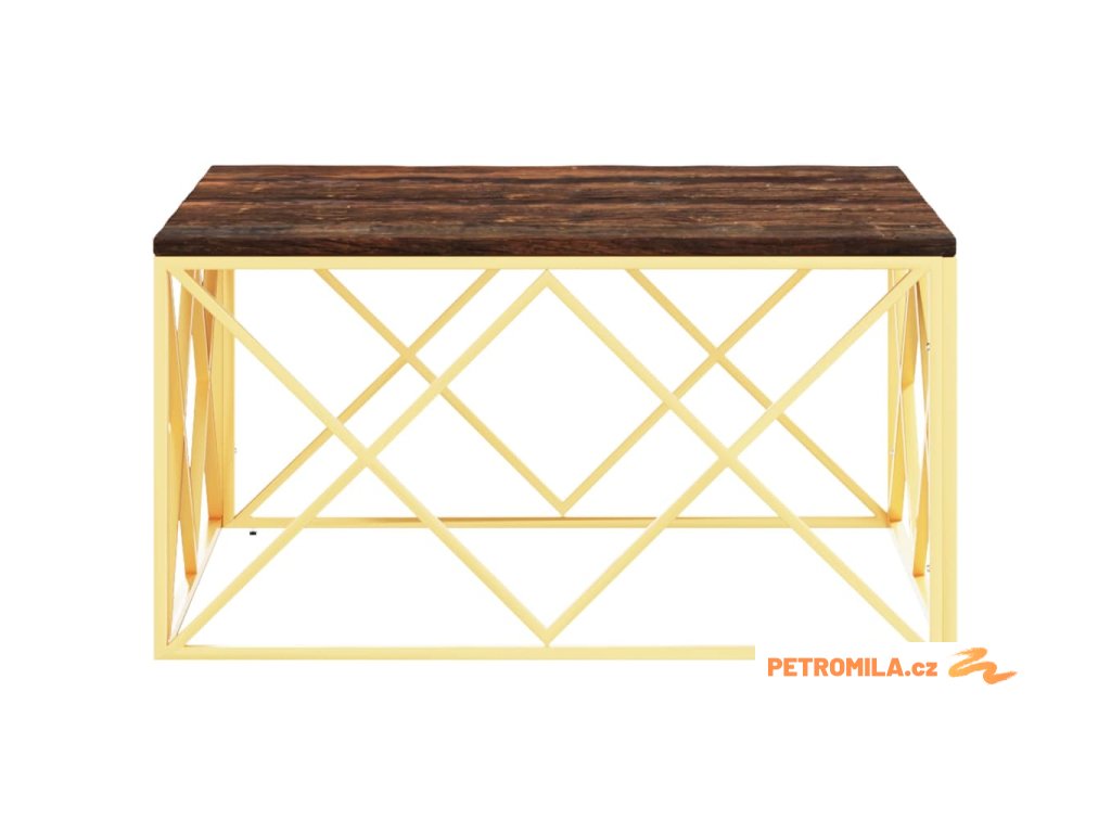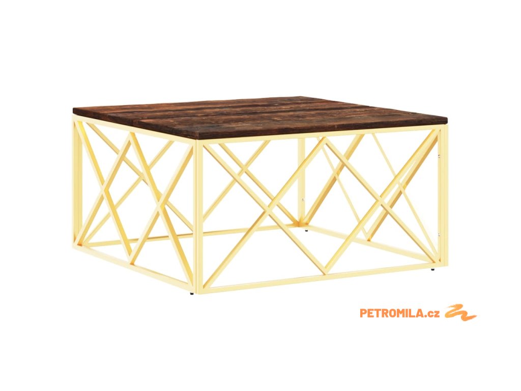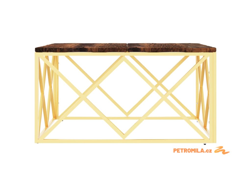 Konferenční stolek zlatý nerezová ocel a recyklované dřevo