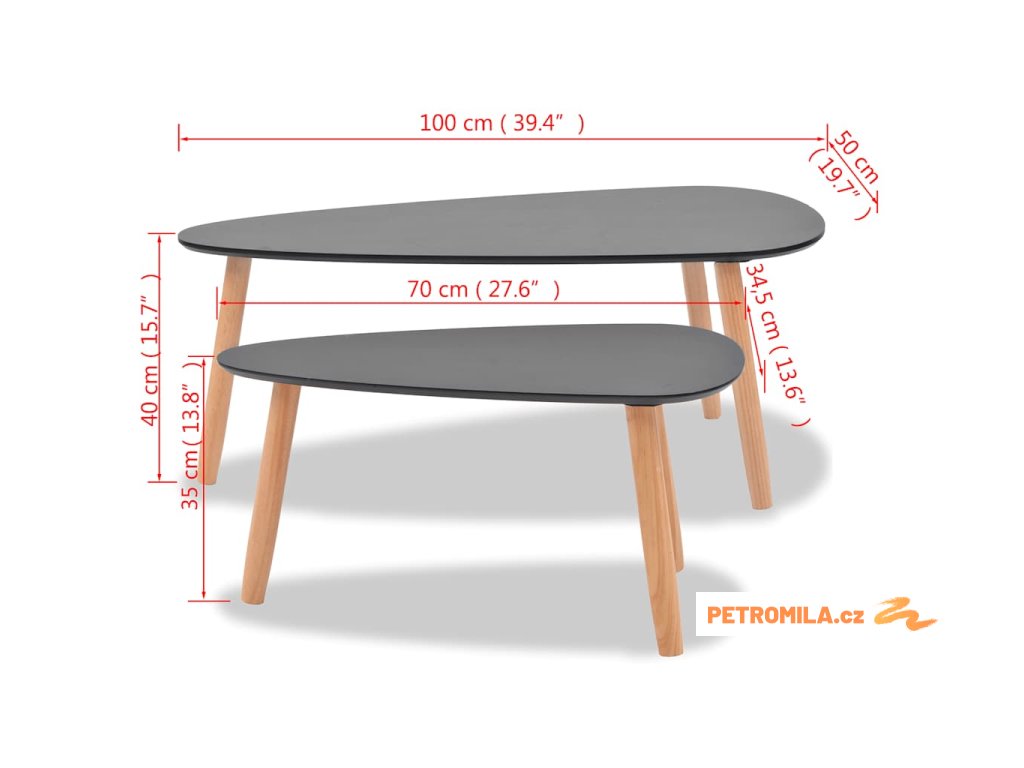 - Rozměry menšího stolku: 70 x 34,5 x 35 cm (D x Š x V)
