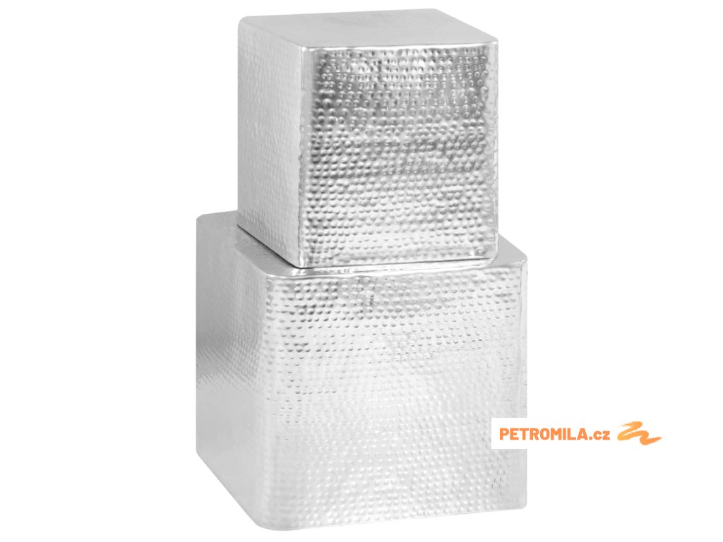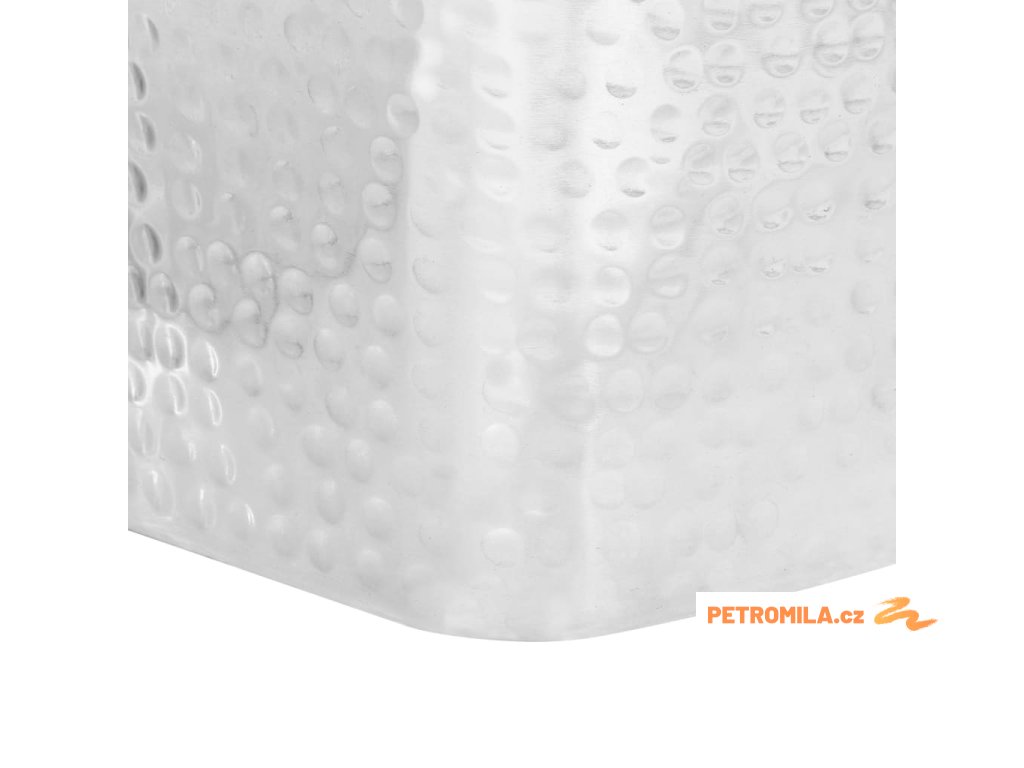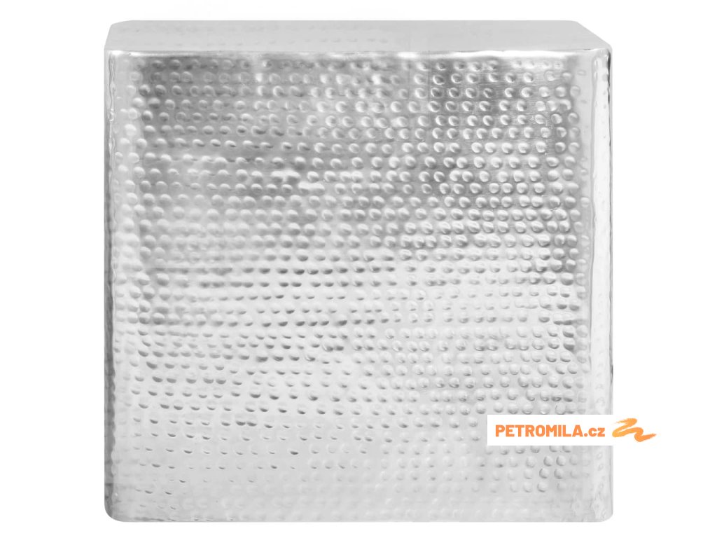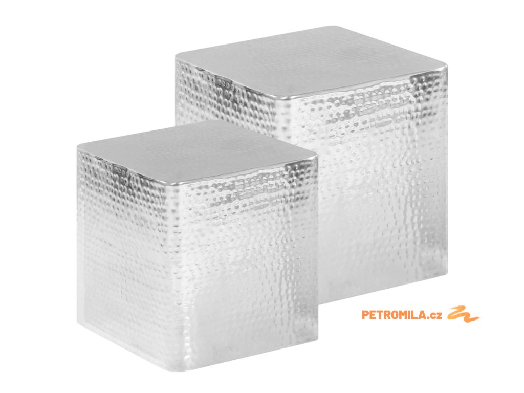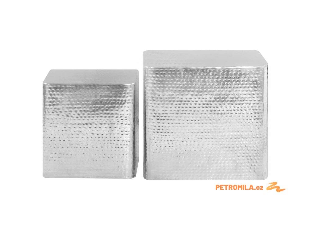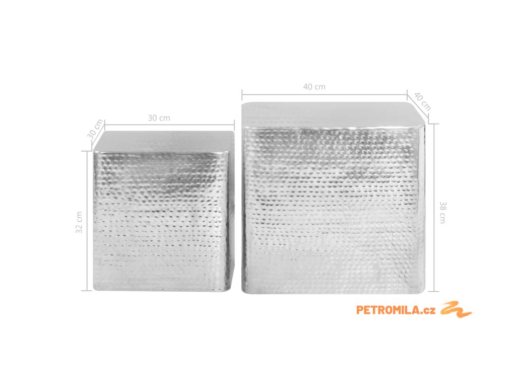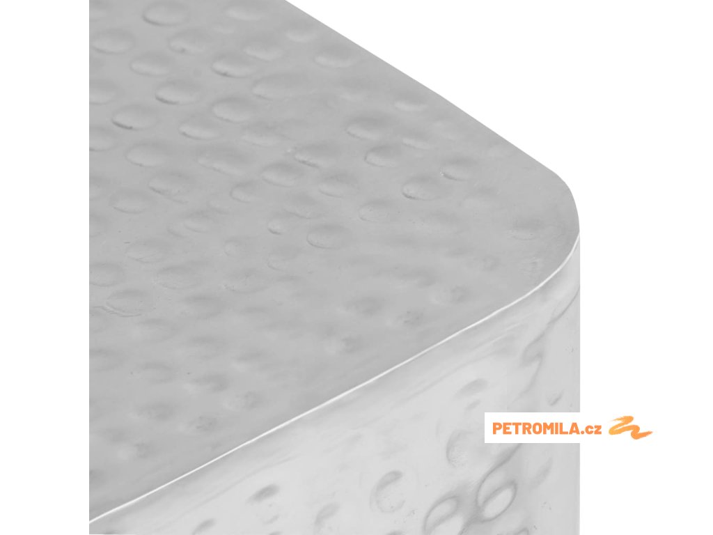 Odkládací stolky jsou vyrobeny z leštěného hliníku, který je stabilní a odolný. Atraktivní tlučený povrch dodává stolu hmatatelnou texturu. Upozorňujeme, že výrobku jsou již sestaveny.